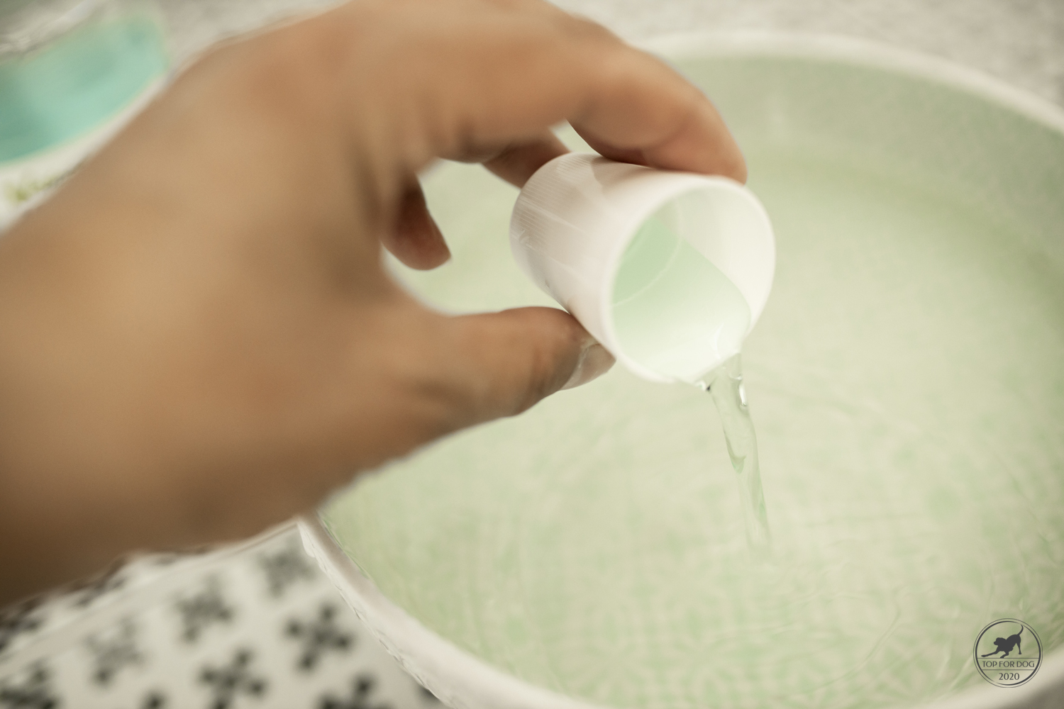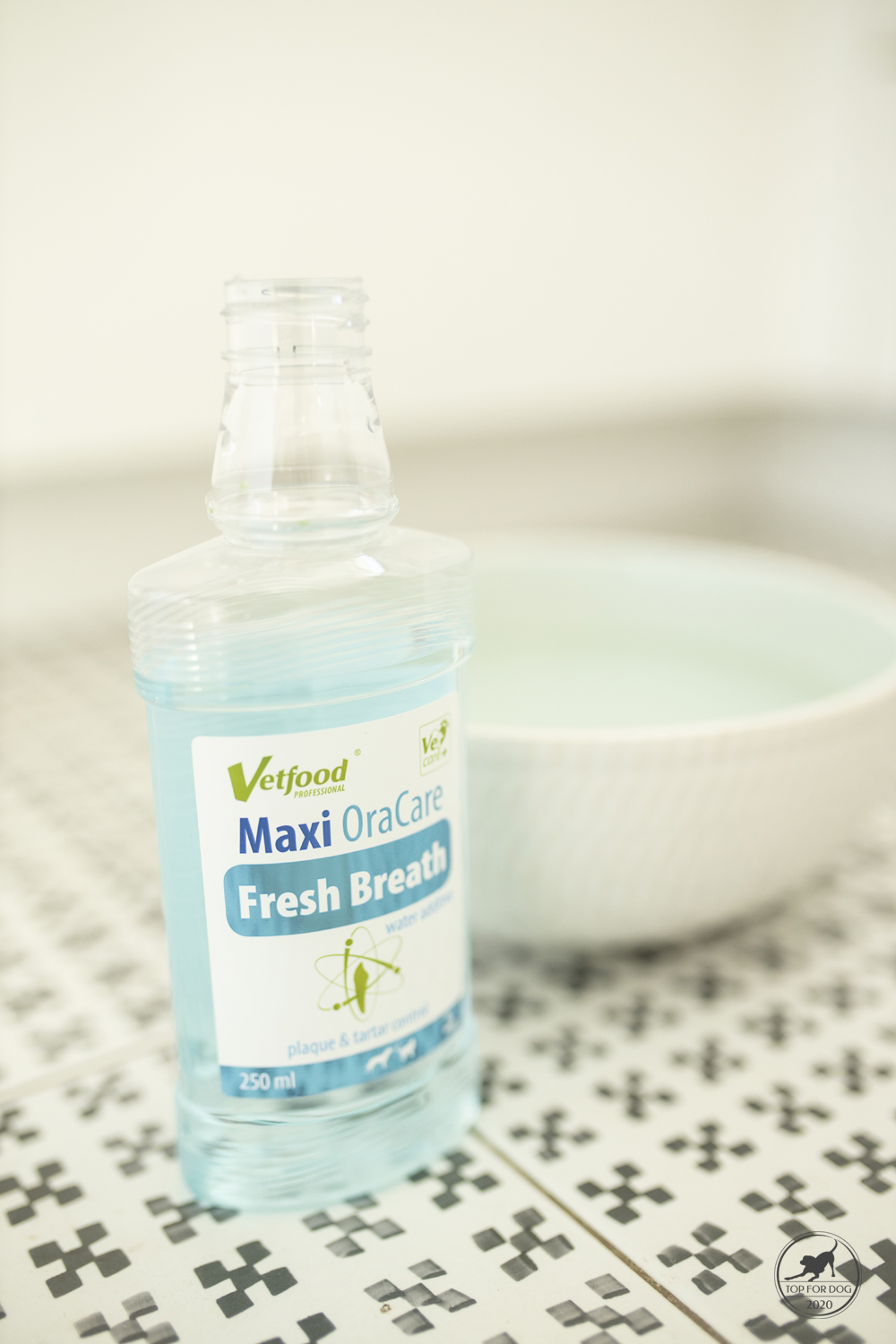 Czy na tym koniec? Jasne, że nie ! po posiłku należy napić się wody 🙂 A skoro psy piją, to niech piją coś sensownego. Na przykład wodę z płynem do paszczy. Serio serio! każdy pies ma zapaszek z paszczy. Lepszy lub gorszy- w zależności od diety, tego co niedawno miał w tej że paszczy ( ach qpojady…), predyspozycji osobniczych. Dla mnie nie jest to zapach z kategorii tych super przyjemnych. Jeśli jest opcja na redukcję -biorę!