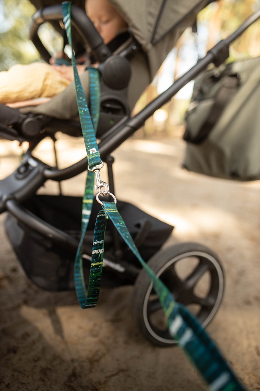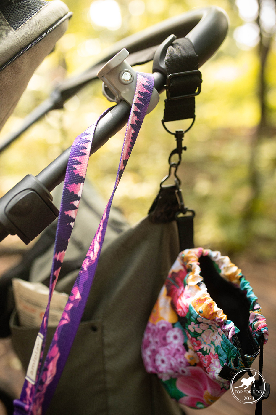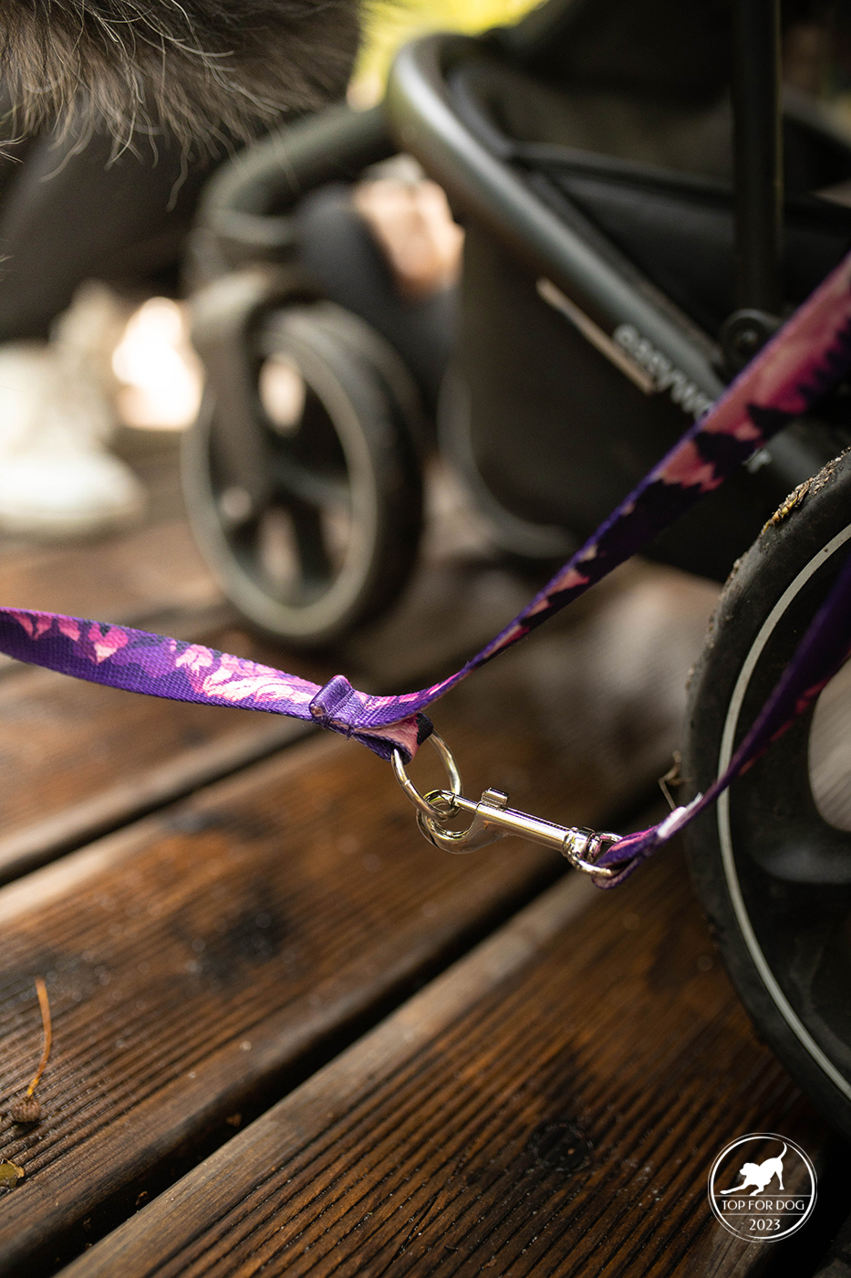 - możliwość przepinania smyczy daje mi opcje przewieszenia smyczy przez ramię. Kiedy idę z Bu z wózkiem, a zależy mi żeby pies szedł dość blisko mnie, to, że mogę regulować długość smyczy jest nieoceniona. Przez miejską część spaceru przechodzimy na krótszej smyczy, by w parku dać sobie więcej luzu.