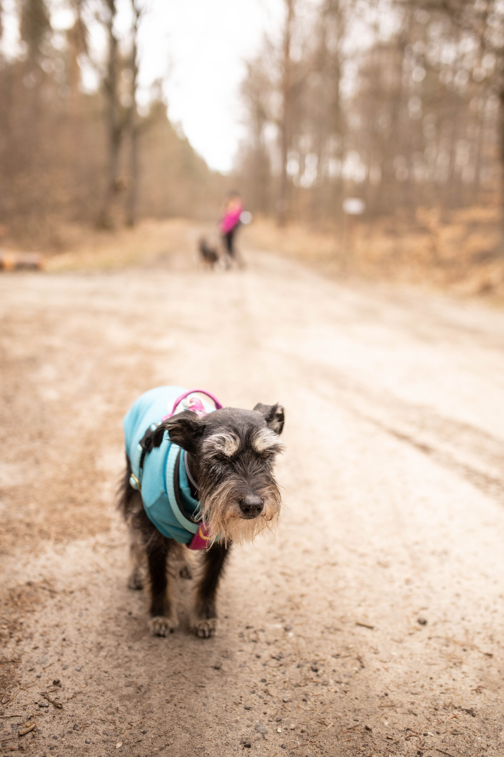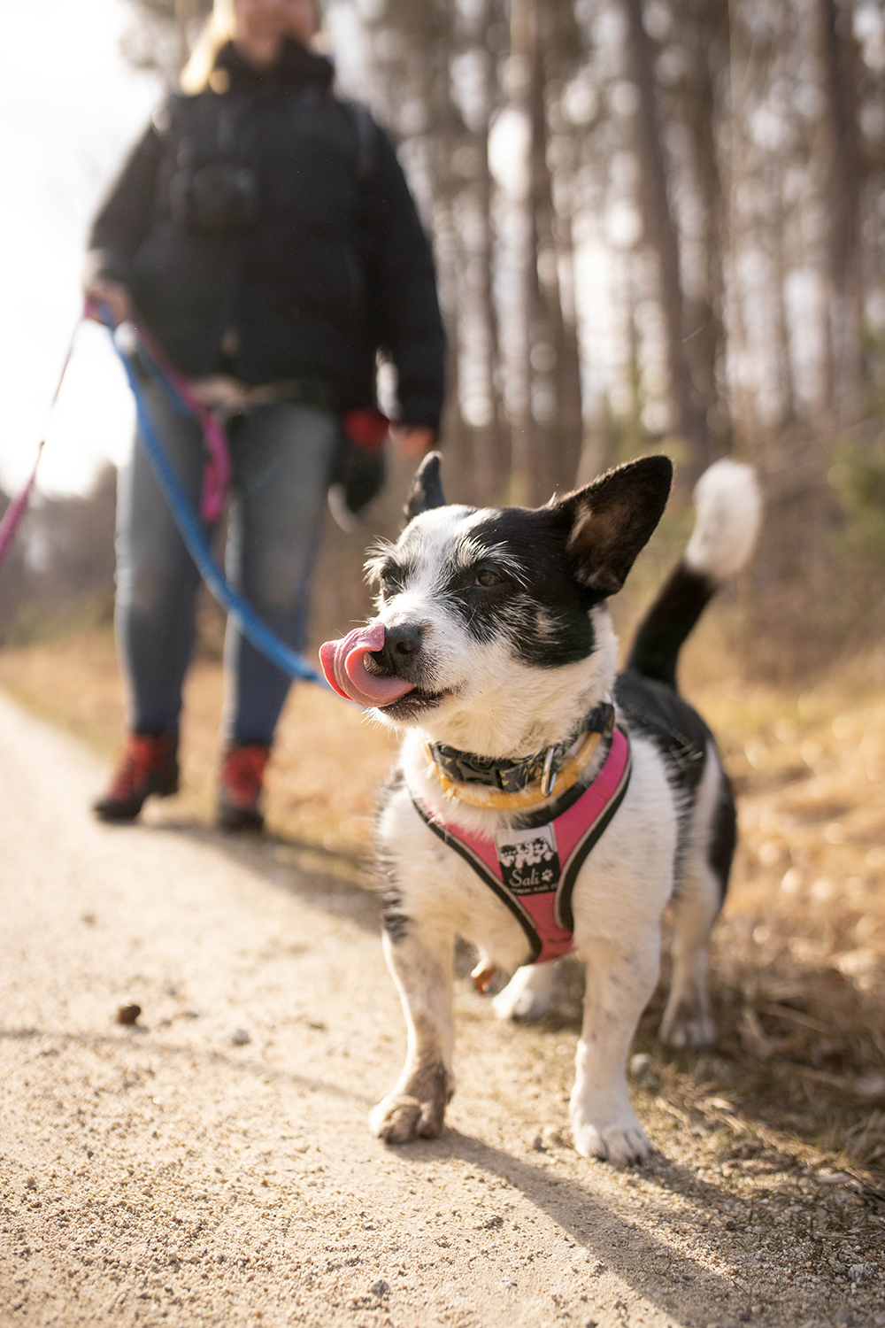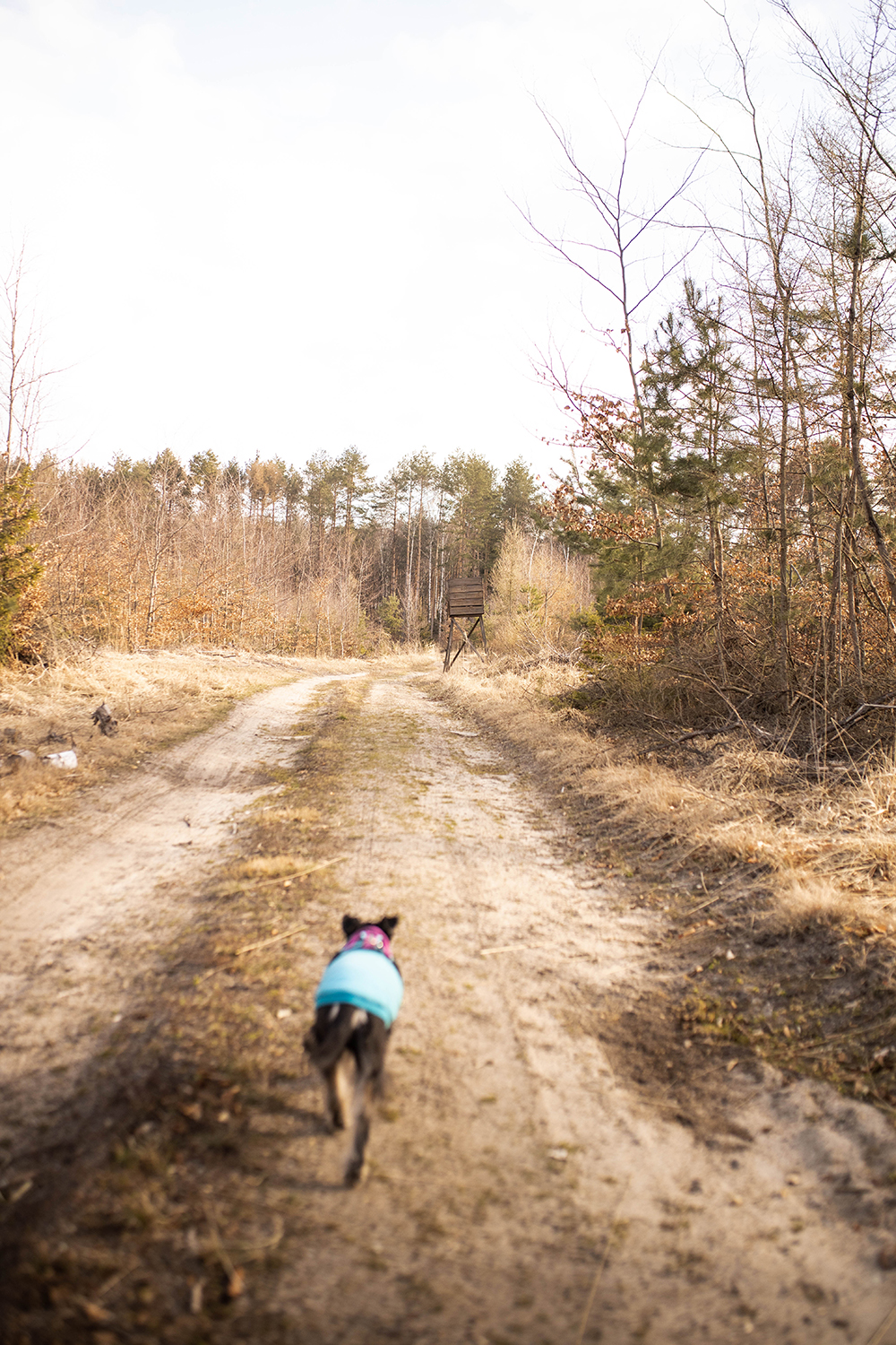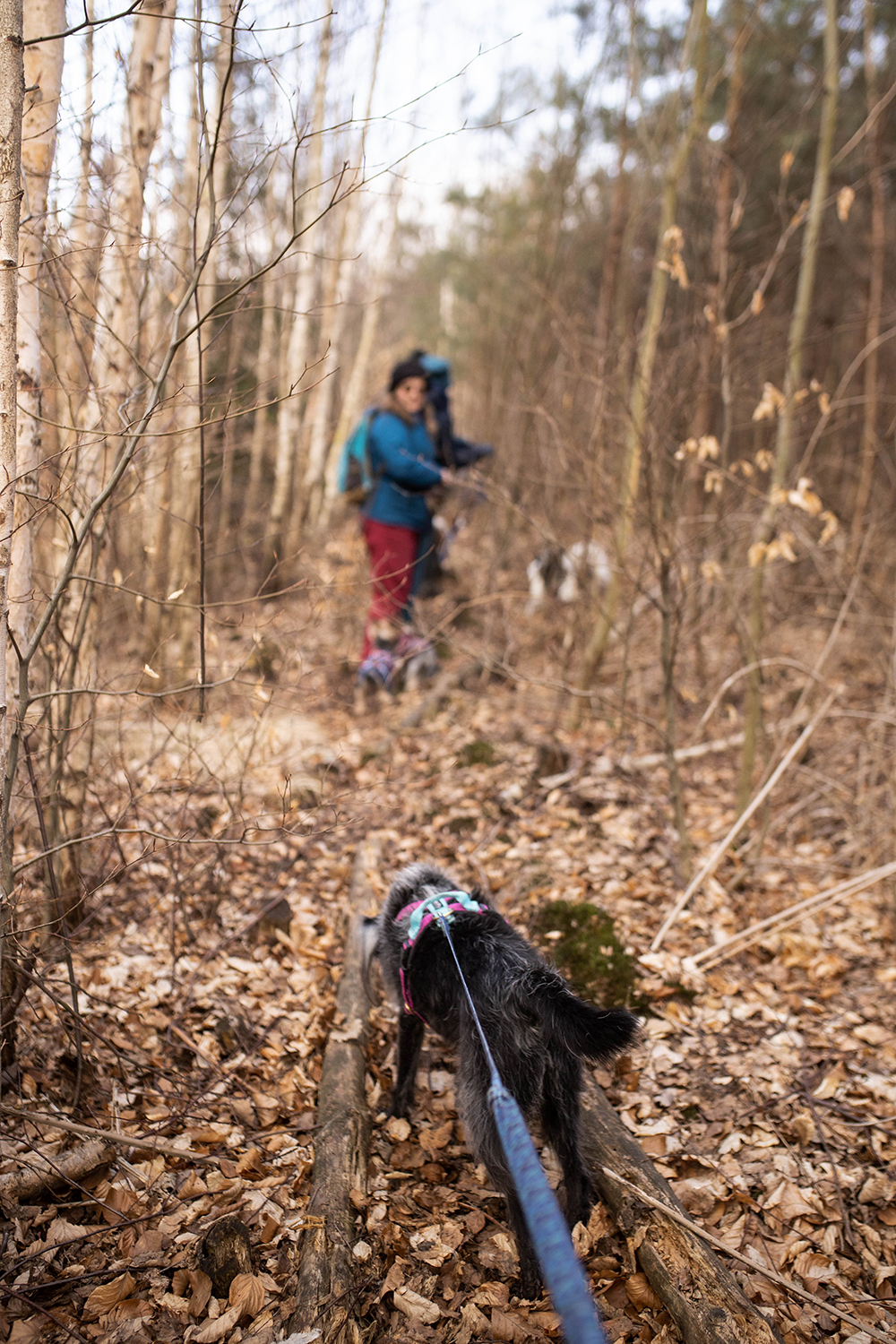 Mimo, że ścieżki tu są porządne i szerokie to zdarzają się też takie, które sprawdzają koordynację ruchową zarówno piesków jak i ludzi. My, naszymi modyfikacjami, byliśmy zmuszeni przejść kawałek takim właśnie parkurowym odcinkiem. Wrzucam to w kategorię- dodatkowe atrakcje, ale trochę też cwaniakuję, bo kiedy tak się przedzieraliśmy, nie był jeszcze sezon pająkowy. Na bank latem nie odważyłabym się tędy przejść.
