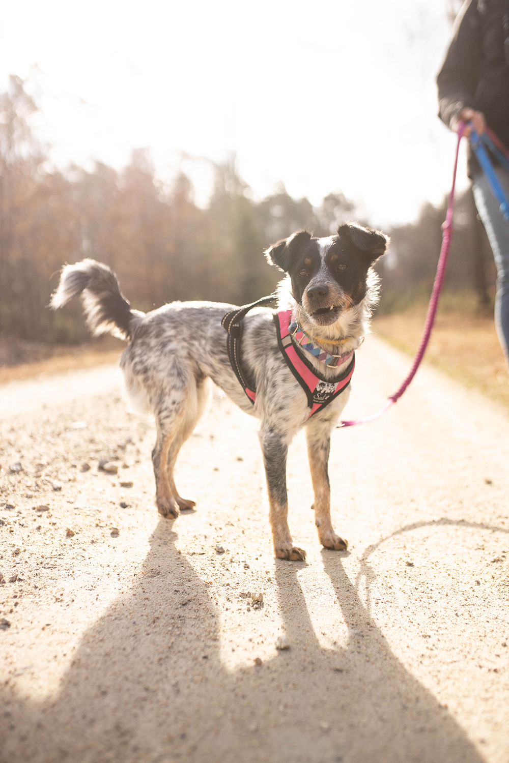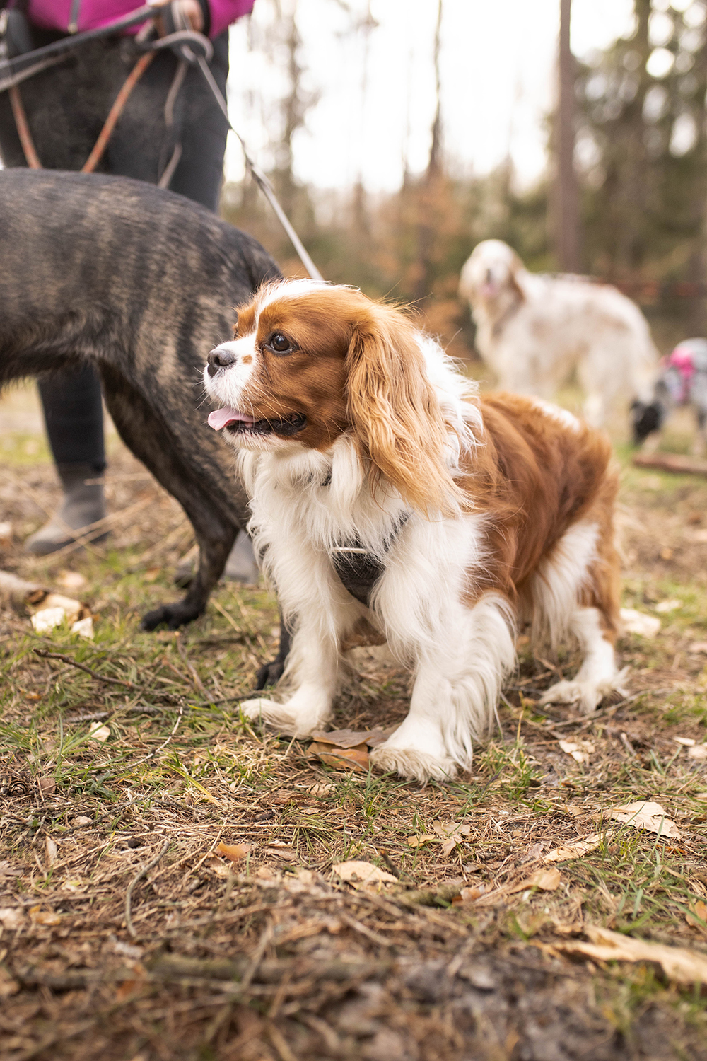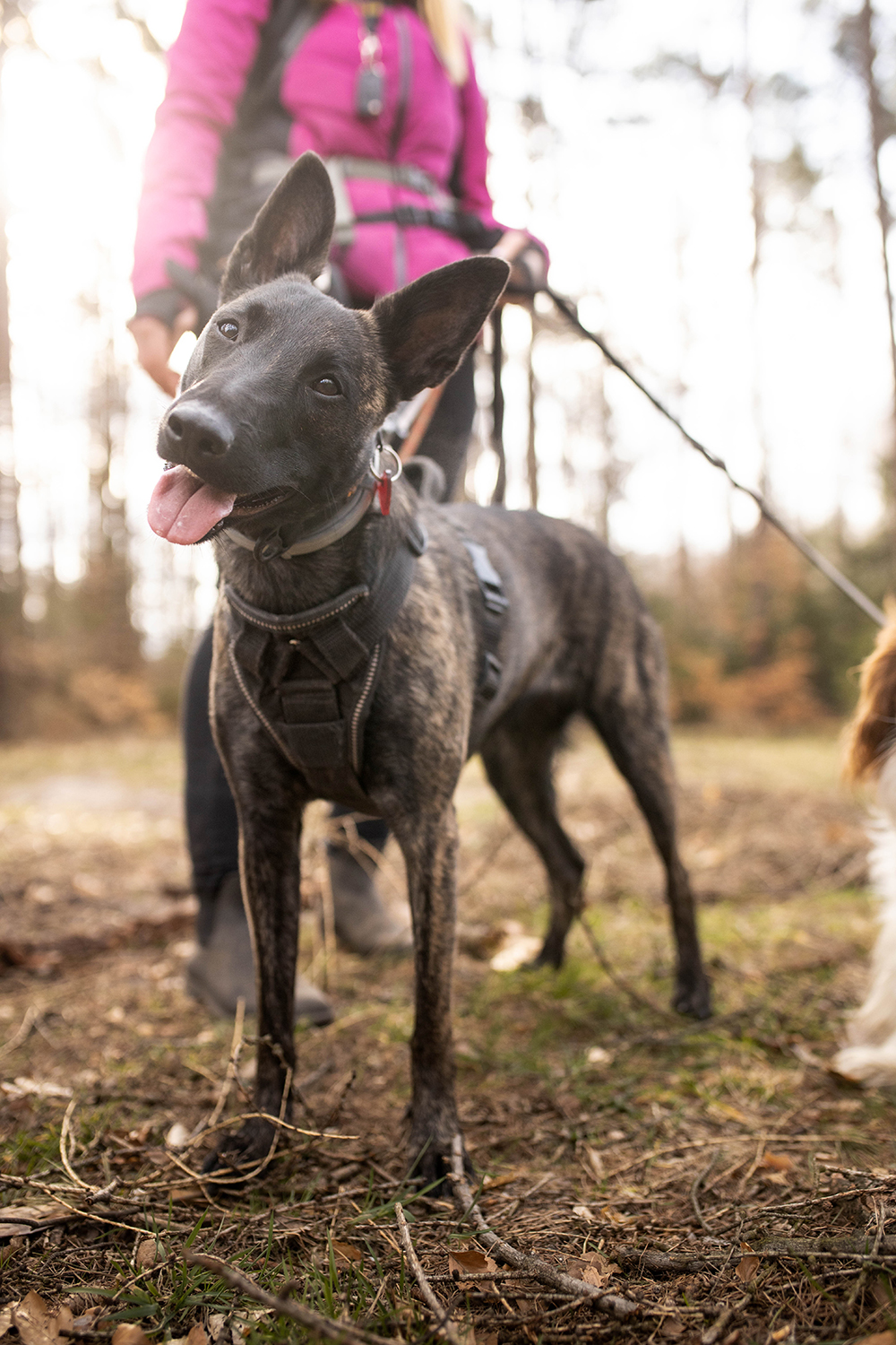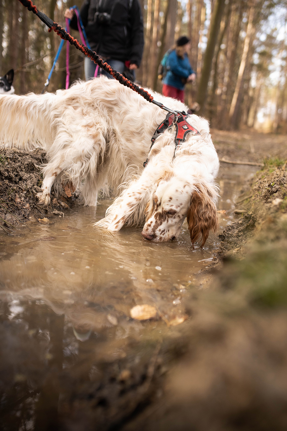 Mimo, że ścieżki tu są porządne i szerokie to zdarzają się też takie, które sprawdzają koordynację ruchową zarówno piesków jak i ludzi. My, naszymi modyfikacjami, byliśmy zmuszeni przejść kawałek takim właśnie parkurowym odcinkiem. Wrzucam to w kategorię- dodatkowe atrakcje, ale trochę też cwaniakuję, bo kiedy tak się przedzieraliśmy, nie był jeszcze sezon pająkowy. Na bank latem nie odważyłabym się tędy przejść.