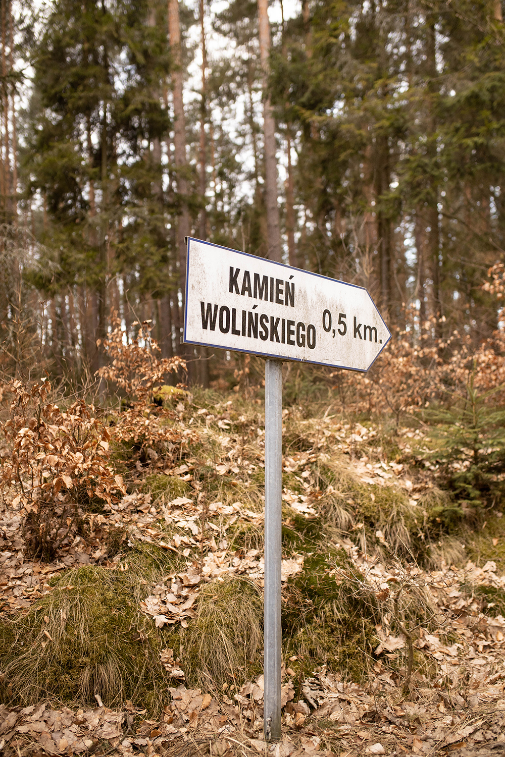 Nie zostawię Wam namiarów na konkretne szlaki, bo ich tu nie ma . Ot taki lajf. Za to jest sporo ścieżek, w tym jedna z drogowskazem. Tym razem trzeba zdać się na posiadane mapki, ja niezmiennie bazuje na mapach cz , są tu oznaczone ścieżki, jest też Kamień Wolińskiego, dojście do tego miejsca nie jest więc trudne. Prowadzi do niego szeroka, dobrze utrzymana ścieżka. Uważajcie tylko, żeby nie ominąć Kamienia. O ile pojawia się znak, o tyle sam kamień przycupnął przy ścieżce i kolorystycznie nieźle się maskuje 😉