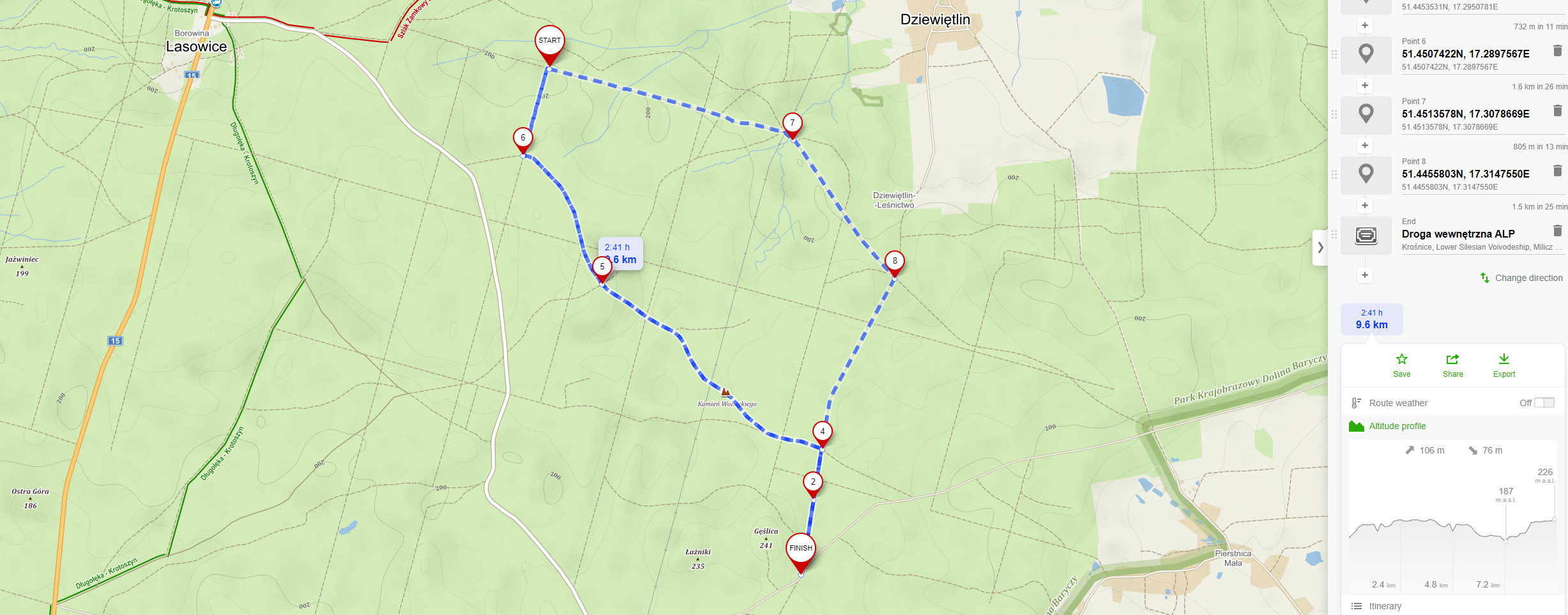 Ponieważ Kamień Wolińskiego zaliczaliśmy na samym początku wędrówki, mogliśmy potem dowolnie modyfikować trasę. Na końcu zostawiam Wam przykładowy przebieg trasy, ale Dolina Baryczy ma to do siebie, że jest tu wystarczająco dużo ścieżek, by móc zmieniać plany, dostosowywać je do możliwości, czasu i ochoty .