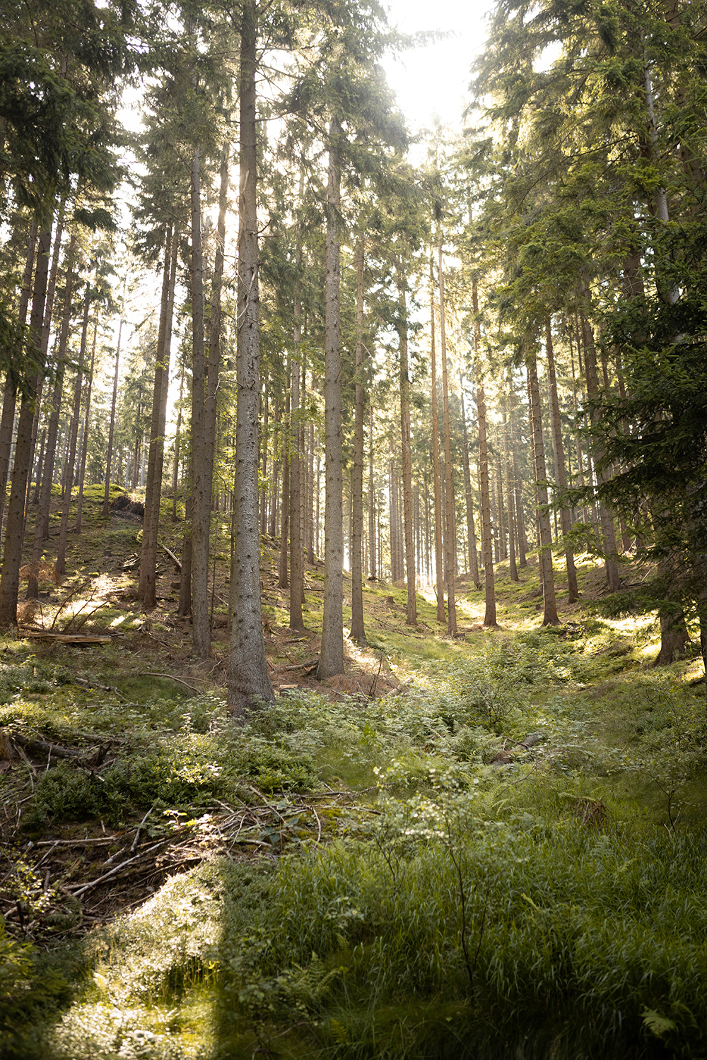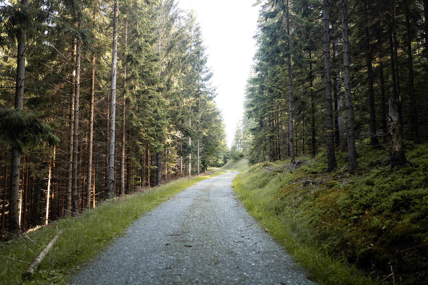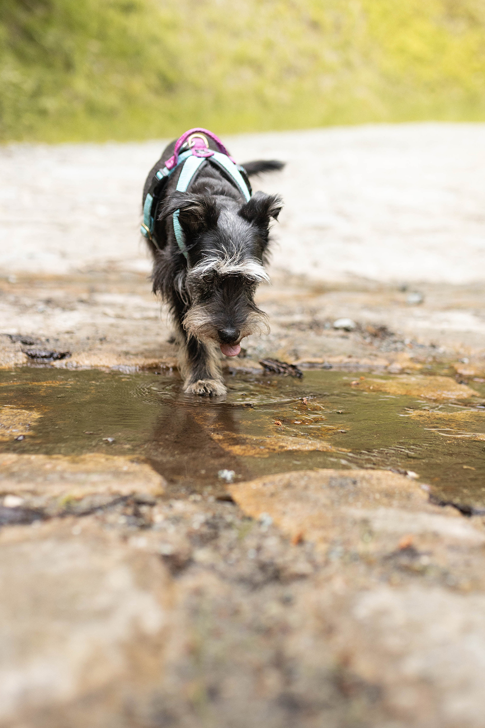 Ścieżka wije się lekko i przyjemnie pod górę. To bardzo spokojna trasa. W sam raz dla każdego- i dla starszego psa i młodego. Ja, w zaawansowanej ciąży też się tu wkulałam 🙂 Dreptaliśmy tu w sierpniu,startowaliśmy wiec dość wcześnie. zagwarantowało nam to pawie bezludne przejście, jedynie w drodze powrotnej spotkaliśmy kilka mniejszych ekip, idących odwrotnie niż my