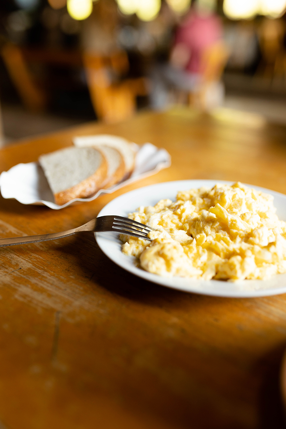 Jako że mój stan wymagałam chwili przerwy, skorzystaliśmy z okazji na sprawdzenie menu śniadaniowego w muflonie. O ile ceny noclegowe są bardzo przyjemne o tyle jedzenie.. jak to w schronisku 😛 ale smakowo jajeczniczka wchodziła jak złoto, nie powiem. I obsługa za barem również dodawała uroku bytności w tym miejscu. Ciężko nie myśleć o powrocie do takiego miejsca kiedy wymieniło się z obsługą więcej niż jedno kurtuazyjne zdanie. Poczucie, że dane miejsce zbiera ludzi podobnych do nas samych skutecznie przyciąga i nie pozwala zapomnieć.