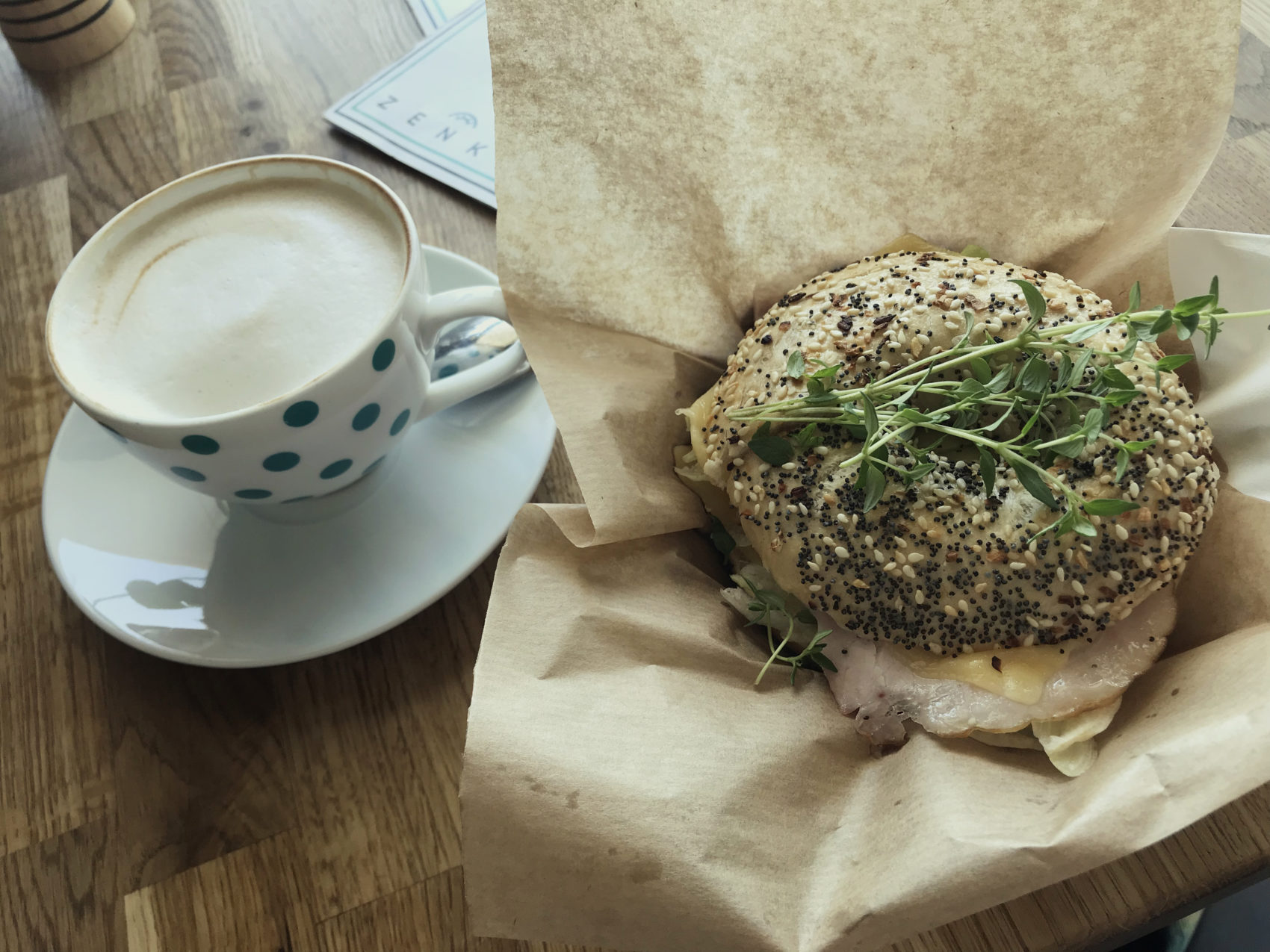 Jeśli po spacerze zachce Wam się uzupełnić cukry i poziom kofeiny polecam kawiarenkę, którą stado miało okazję odwiedzić po raz pierwszy, ale jeśli tylko się przykulamy w te okolice będą i kolejne wizyty. Zenka Cafe. Kawiarnia w nowym budynku biurowym ma jednak fajny klimatyczny charakter. Pieseły mile widziane, a w weekend, mimo pięknej pogody i godziny moim zdaniem bardzo kawiarnianej, sporo stolików do wyboru. Zapewne jest to zasługa lokalizacji. To nie Rynek ani ścisłe centrum, ale nadal w zasięgu spaceru tak od Parku Popowickiego, choć to chwilka dreptania, ale też od Placu Jana Pawła, z którego startowałyśmy ze spacerem miejskim o wtedy.