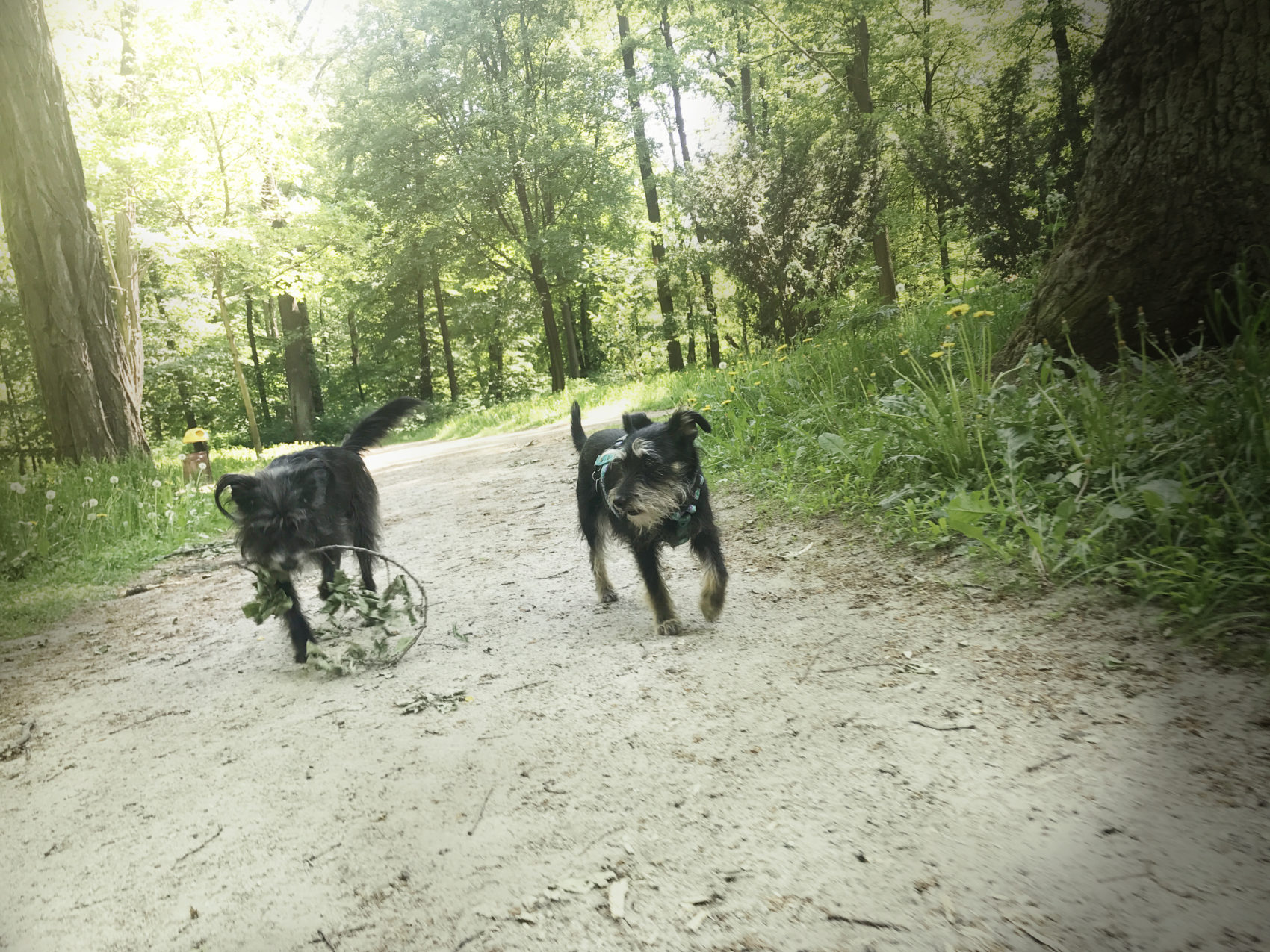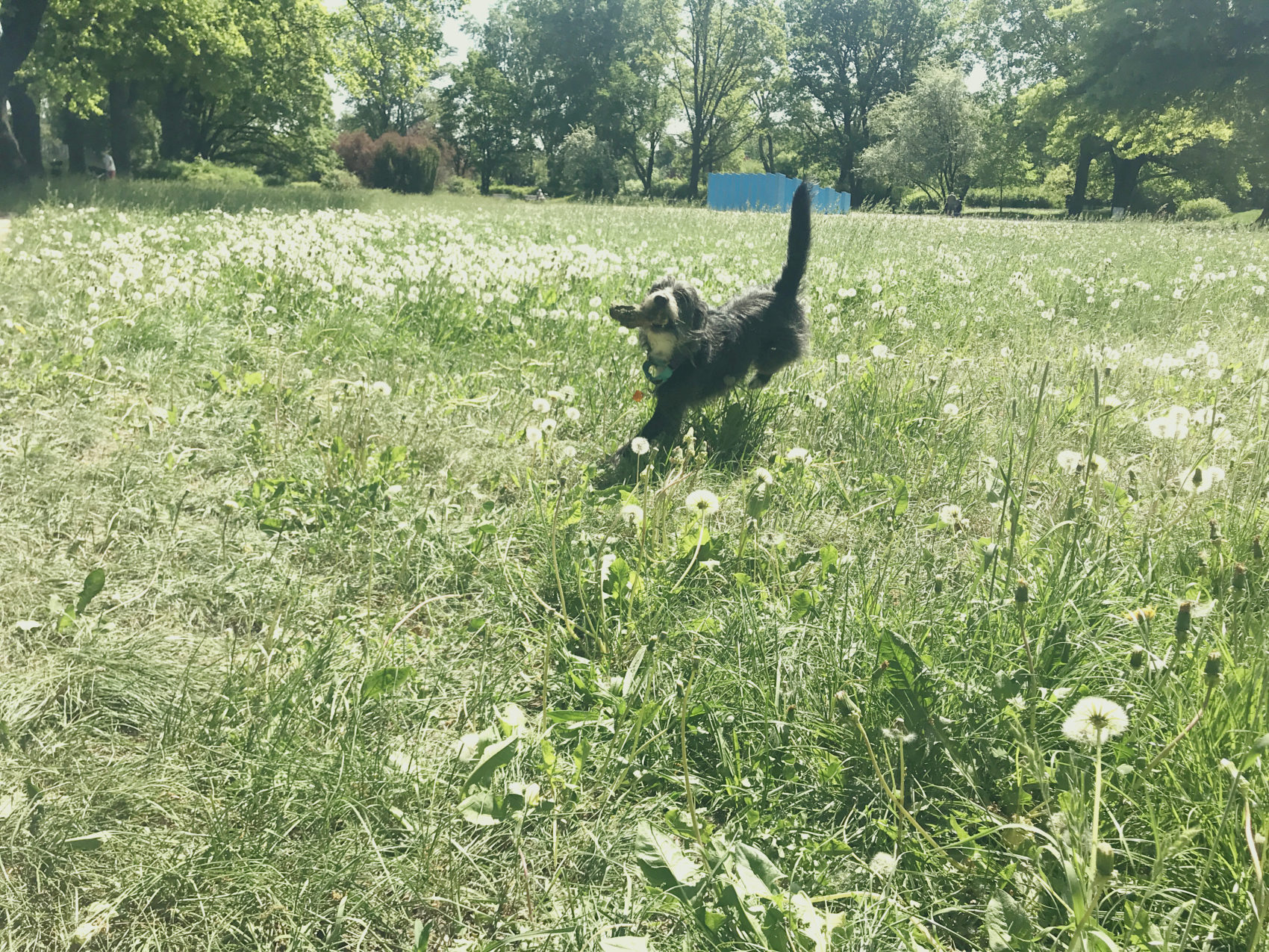 Mój pierwszy spacer po tym parku zaliczam do przyjemnych – ławeczki, sporo trawiastej przestrzeni, brak wody z kaczkami, jak to ma miejsce na przykład w Szczytniku, czyli spuszczona Bu jest grzeczniutka, kochaniutka i na puszczenie jej oka wracająca do nogi to coś czego było mi trzeba. Mam dni kiedy mogę iść gdziekolwiek z psami, nawet jeśli oznacza to użeranie się z nimi, negocjacje o wypluciu czegoś (smakowała ci Pufioczku ta zgniła rybka ostatnio?) ale mam też takie dni, kiedy mimo chęci spacerowych wolę tereny gdzie kontrola nad futrami jest najzwyczajniej prostsza.