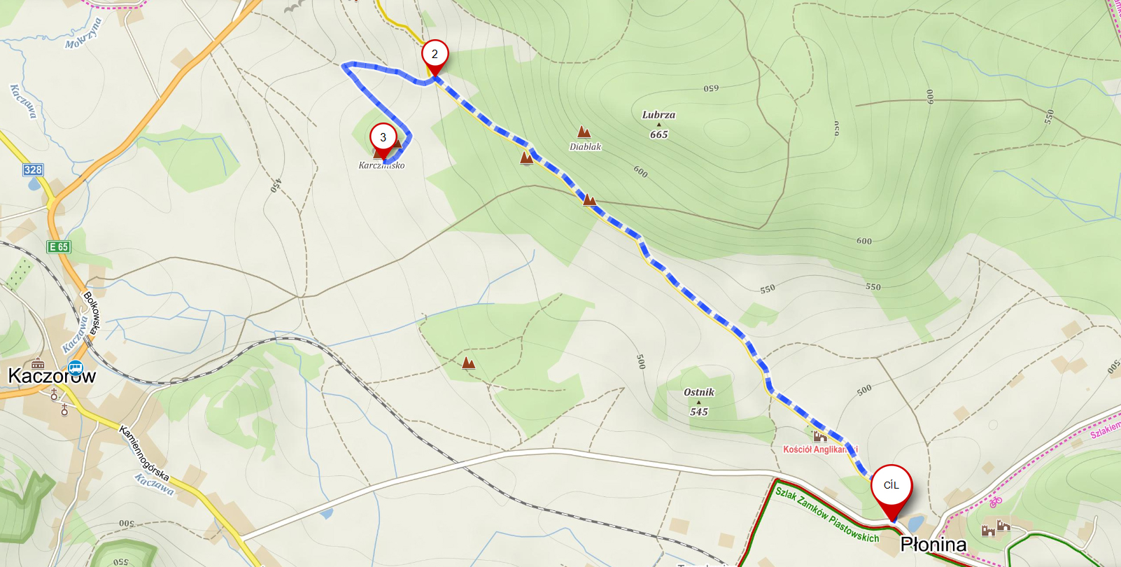 Nawigacyjnie trasa jest bardzo prosta. Góry Kaczawskie to w ogóle fajne górki, pod względem odnajdywania się. Często jestem zaskoczona bardzo dobrze utrzymanym oznakowaniem. Nawet niszowych szlaków. Ta trasa jest tak prosta, że trzeba patrzeć uważnie na mapę, żeby nie przeoczyć np takich formacji skalnych jak Czerwona Skała, bo Diablaka na bank nie przeoczycie