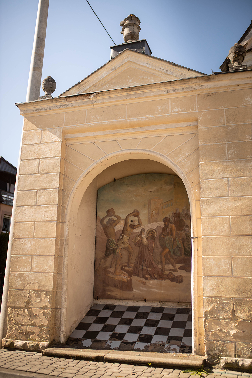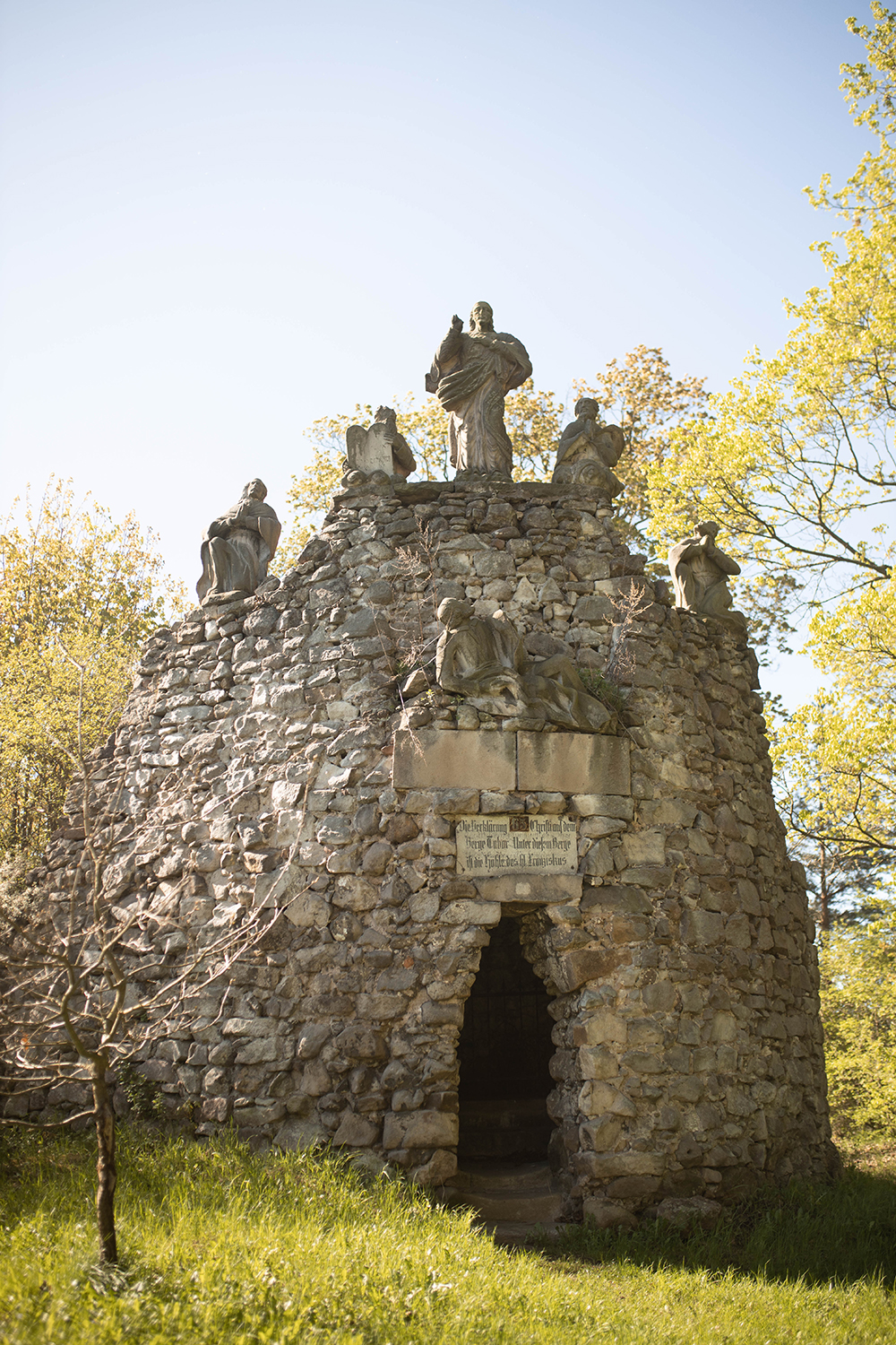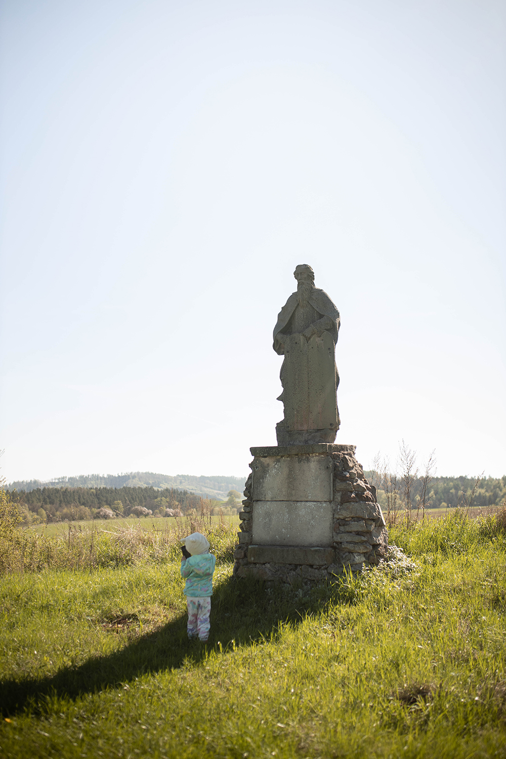 Poważnie robi się od początku ale kiedy wyszłyśmy na pierwszą kapliczkę na górze, po wejściu powyżej poziomu miasta, mimo, że cała wyprawa to tylko ok 5 km, zrobiło się wyjątkowo. Nie sama wędrówka, ale namacalna historia. I mimo, że do religijności mi daleko, jako ktoś , kto ze sztuką a więc i historią sztuki ma sporo wspólnego, cieszyłam się jak dziecko. A nawet bardziej niż dziecko-moje. Choć i to miało radochę . Bo czy może być lepsza motywacja do dreptania niż kolejny widoczny na horyzoncie punkt z ciekawymi obrazkami i rzeźbami?
