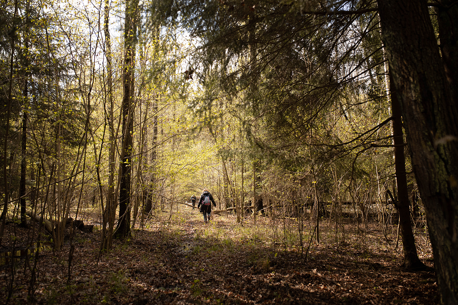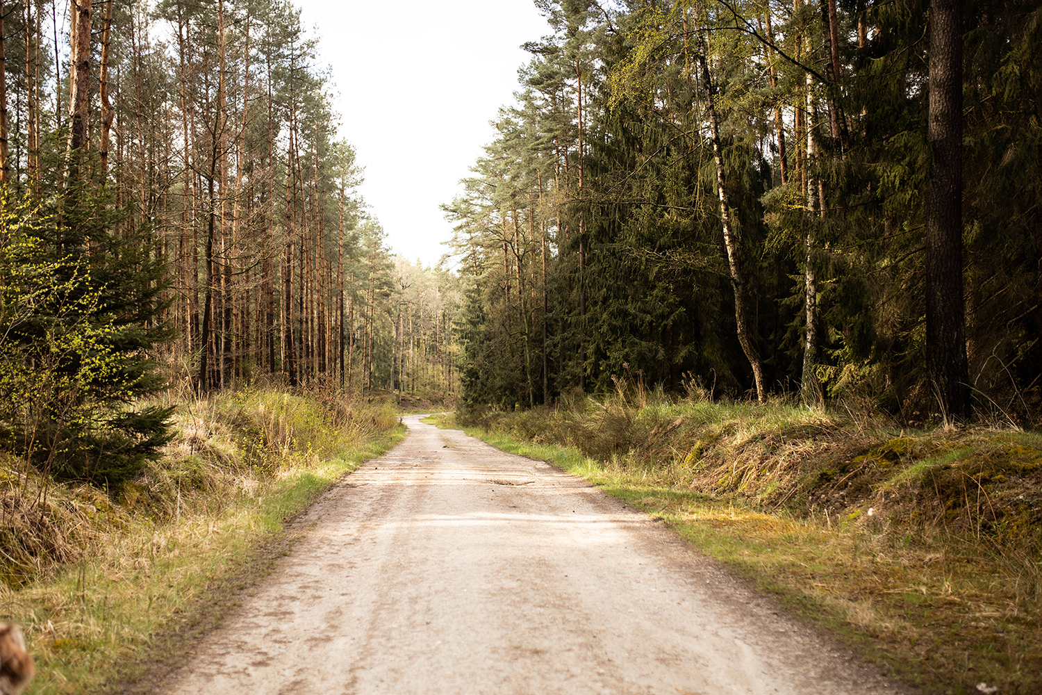 Cała nasza trasa to leśne dukty. Szersze, lepiej utrzymane i suche ale i trochę dzikich ścieżek, po deszczach miękkich od błota. Co jakiś czas smyramy się wzdłuż strumyczka więc trasa ta idealnie nadaje się na lato. Naturalne poidełko w zestawie.