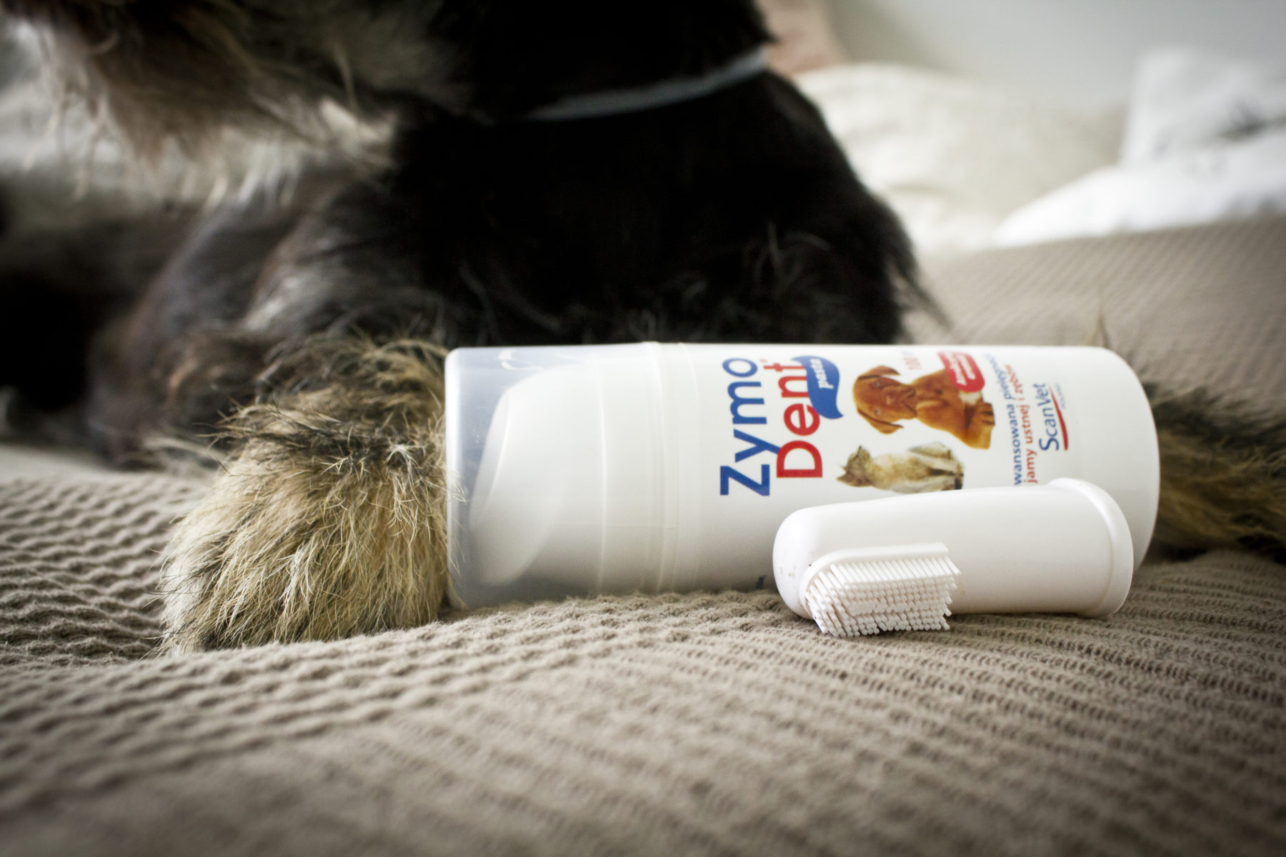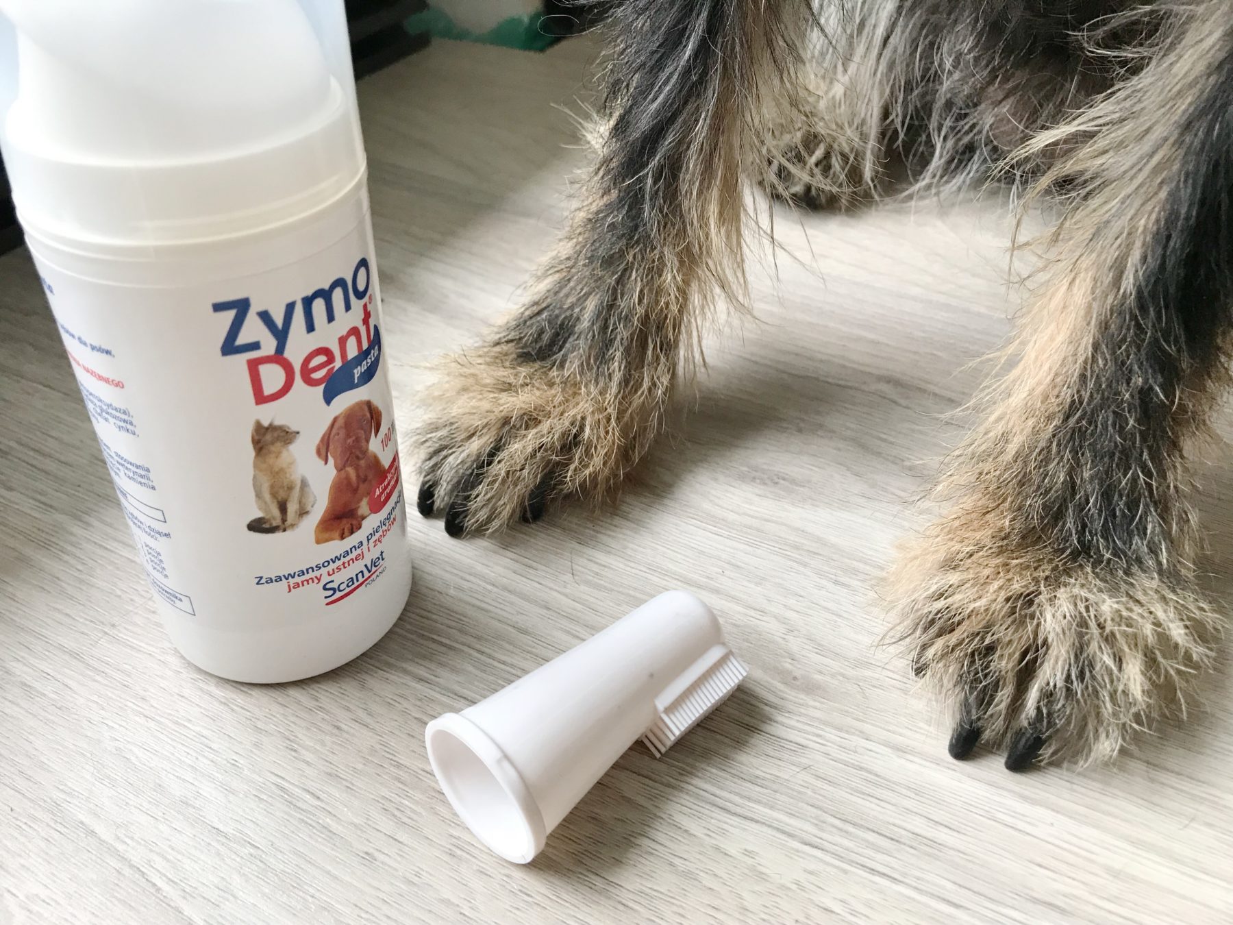 Miałam świadomość, że ograniczenie higieny paszczy do żarcia i gryzaków to trochę za mało, szczególnie w przypadku psa, który od początku naszej wspólnej egzystencji ma problemu w tej strefie. Przy Bu chciałabym w ogóle uniknąć tematu. Kiedy więc trafiło się ślepej kurze ziarno i ScanVet podesłał nam do testów pastę do zębów wiedziałam, że może to być to czego nam brakowało. Ale od początku. Co to to w ogóle jest i co ma wspólnego z pastą do zębów, która rano zmienia moją paszczę z kapcia w szeroki uśmiech? Jak pisze Scan Vet ZymoDent Pasta to enzymatyczna pasta do pielęgnacji jamy ustnej i zębów dla psów, kotów i innych zwierząt.
