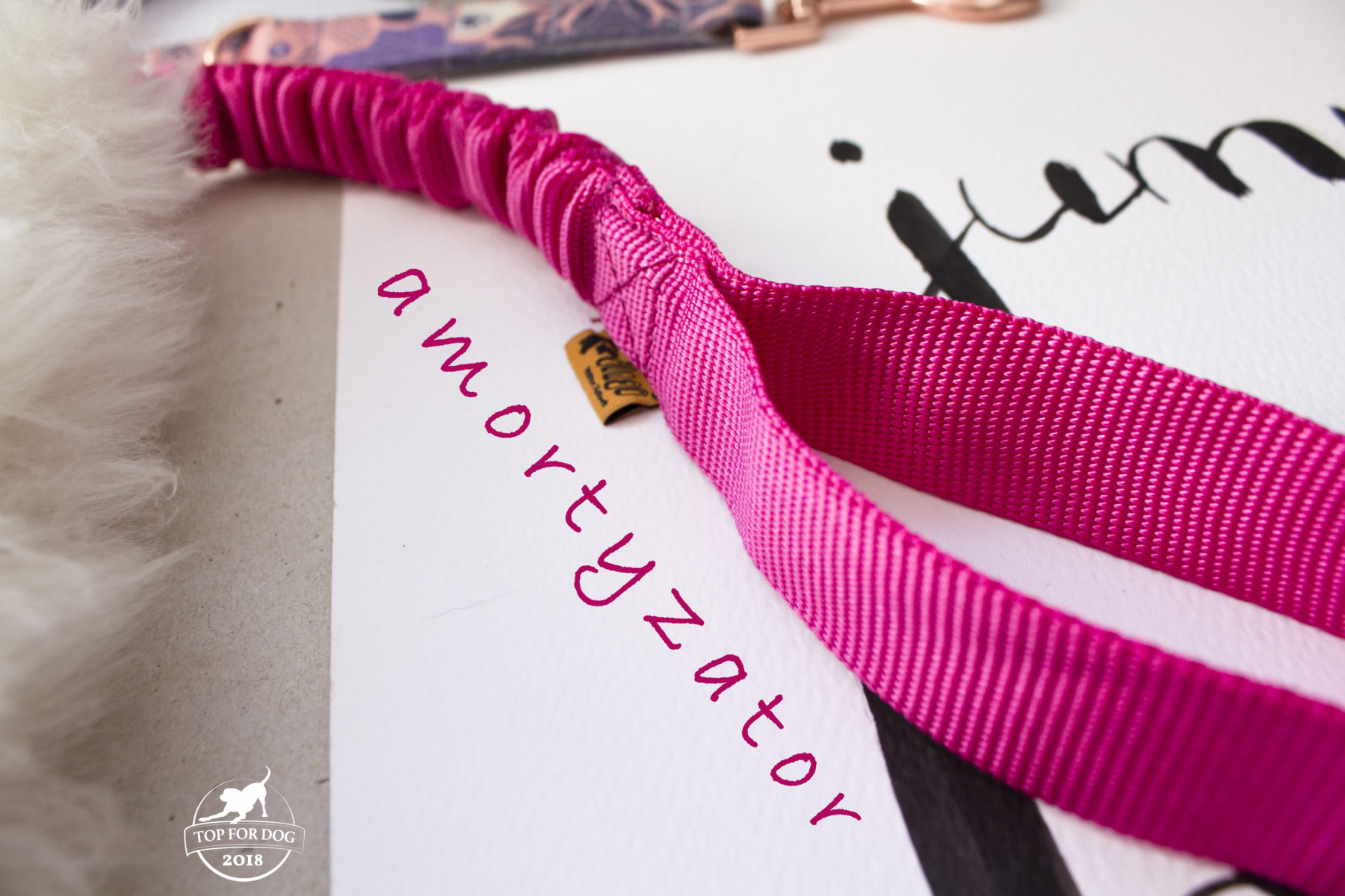 Całość dopełnia rączka na amortyzatorze – różowa <3 Przy psie takim jak Bu, który lubi się na zabawce uwiesić, poszarpać, potrząść głową uważam, że amortyzowana rączka to podstawa. Jestem spokojniejsza, że nawet podczas dynamicznych zabaw i gonitw, kiedy Bu bawi się w IPOdoga, nie zrobi sobie krzywdy. Długość amortyzatora w spoczynku to około 29 cm z rączką, po rozciągnięciu to w naszym przypadku nawet prawie 50 cm z rączką. Rączka bardzo ułatwia utrzymanie zabawki.