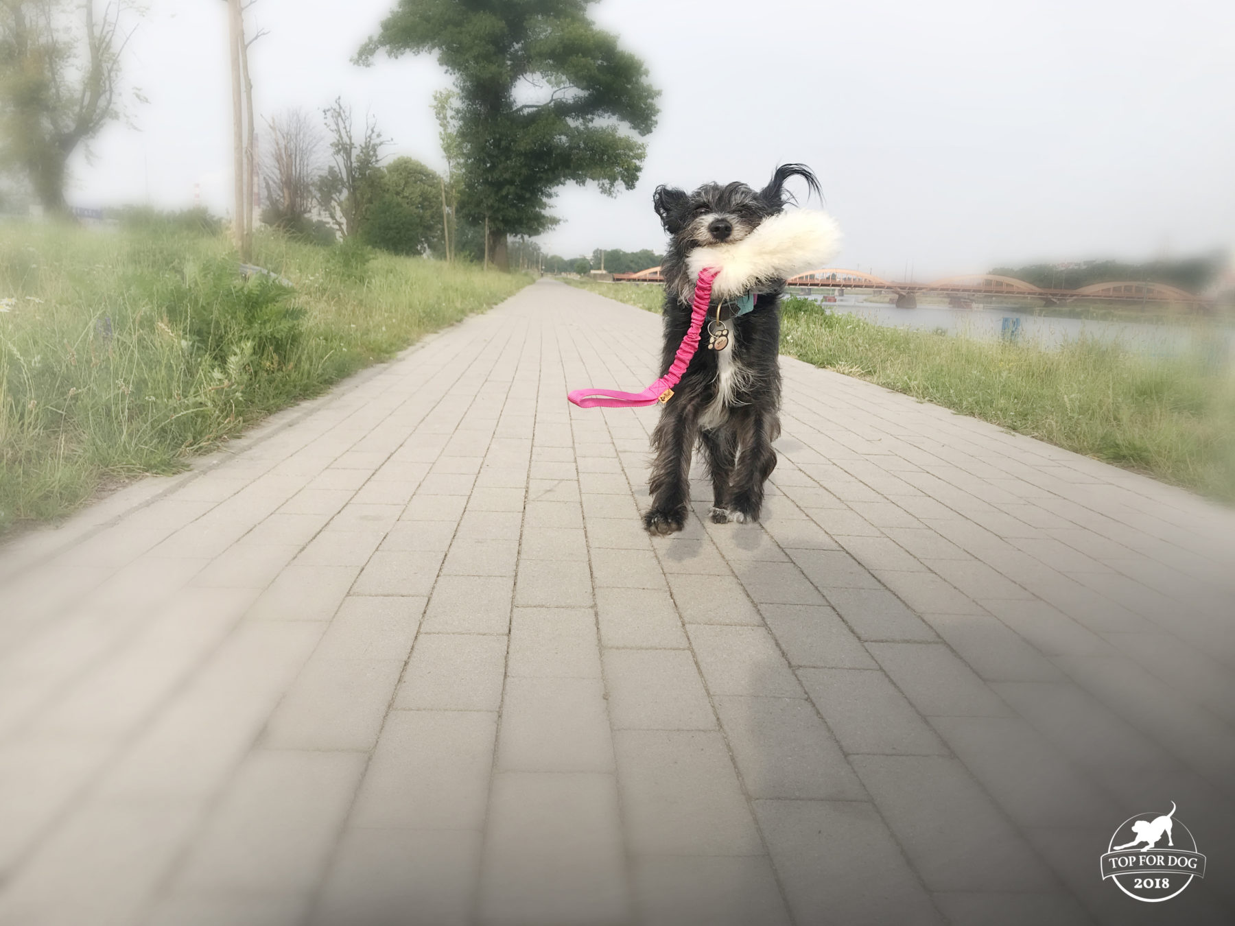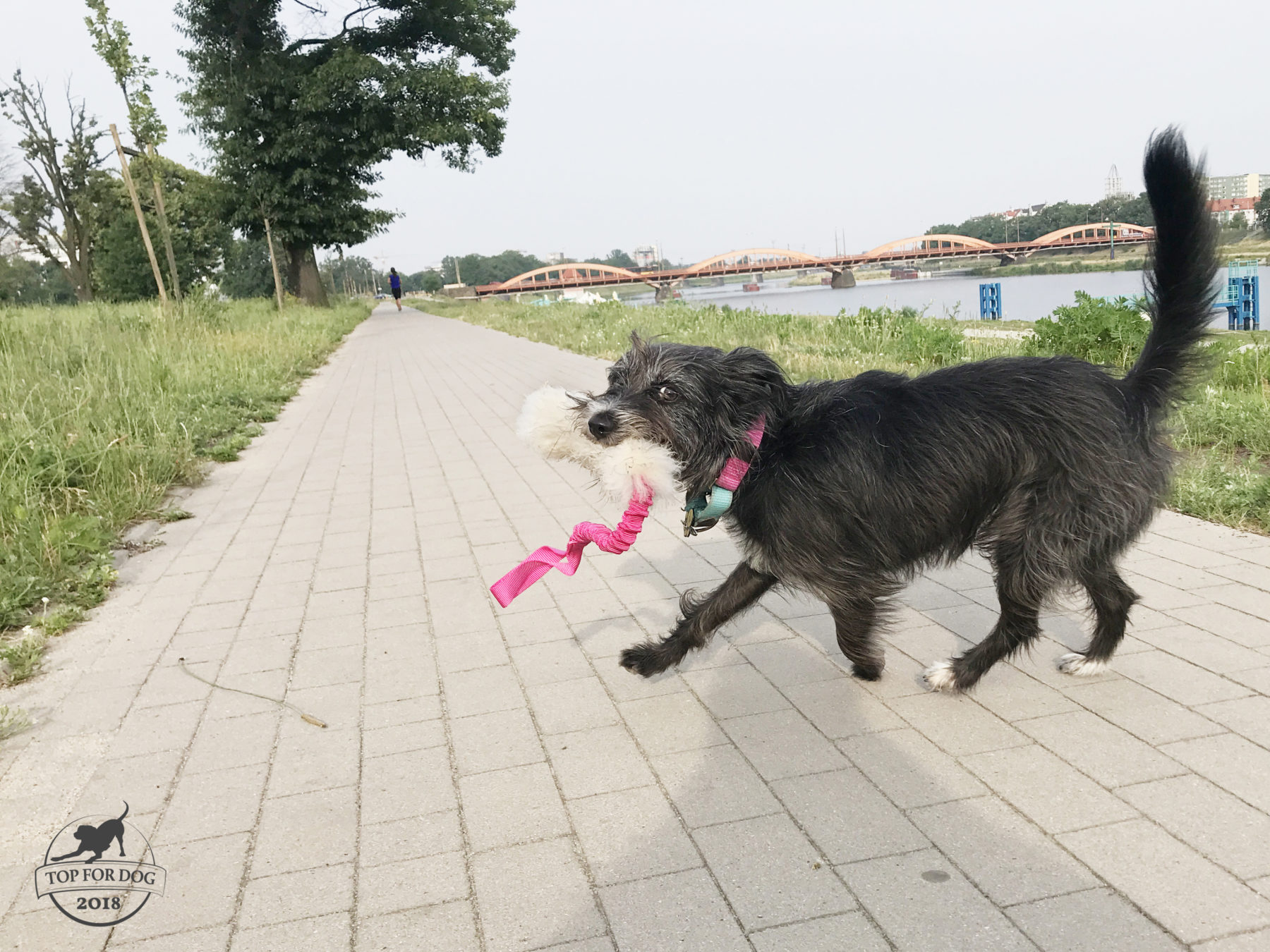 Bu jest mała, waży 9 kilogramów, ale szarpać się lubi. Lubi też chwytać szarpaki w różnych miejscach – za rączkę, za główną część. Lubi sobie pobiegać z łupem w ryjku przy okazji fyflając zabawkę w błocie, wodzie, trawie… Ja lubię na spacerach mieć jakąś bukosławową zabawkę, cieszy mnie, że chociaż tego psa da się tak skutecznie nagrodzić czymś co nie jest żarciem. Jednocześnie nie lubię chadzać na spacer, szczególnie w nasze codzienne tereny, objuczona torbami czy plecakami. Na spacer zabieram telefon, klucze i właśnie zabaweczkę, wszystko ma się zmieścić w nerce. Dingowy Bungee daje radę, jest miękki, da się do powyginać i upchnąć. Dla mnie to bardzo ważne. Jednocześnie jest lekki, więc nawet na dłuższym spacerze nie jest specjalnym obciążeniem.