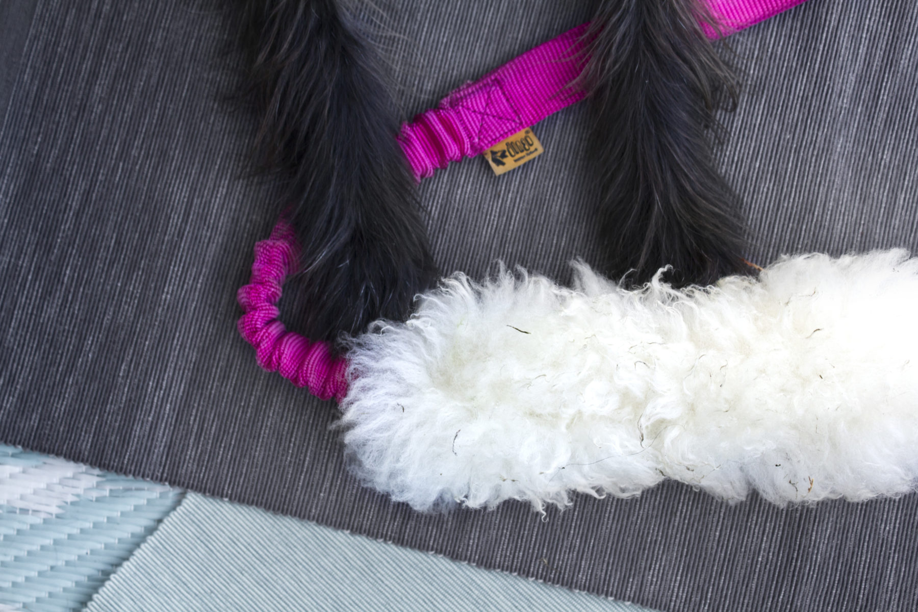 I taki oto szarpak futerkowy dostała Bu do testów od Dingo, z naturalnego, owczego futerka, na amortyzowanej rączce.
