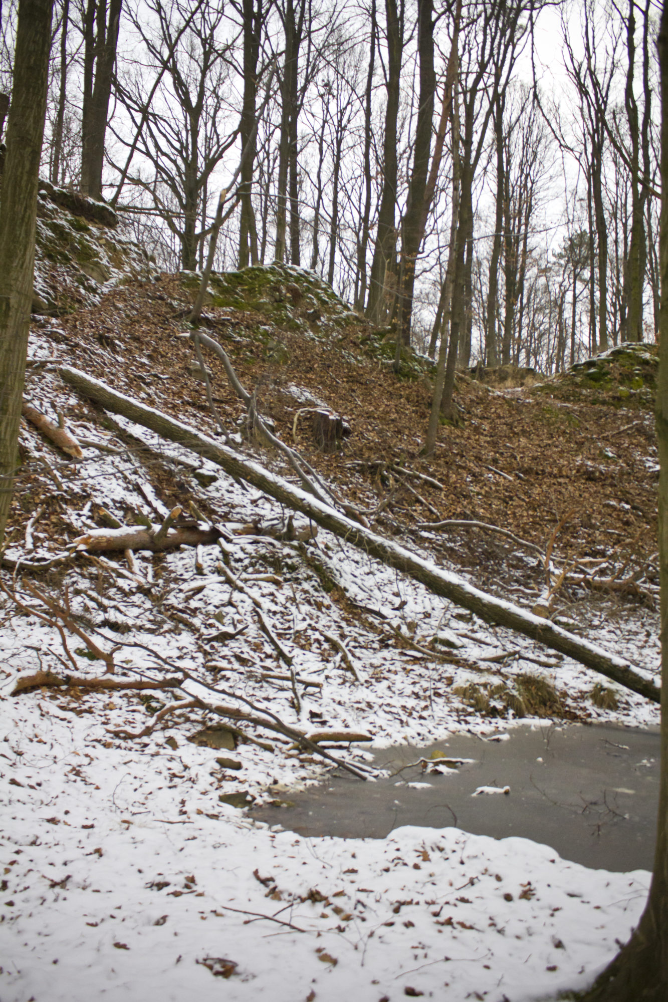 Sama trasa była bardzo urozmaicona jak to Wzgórza Strzelińskie, Chwilami miałam wrażenie, że ten kto projektował przebieg szlaku szedł przez las i nagle stwierdzał |jagi mega głaz, czadowo będzie jak wszyscy obok niego przejdą . obok niego i obok tamtego i tamtego też !” . Tak więc dreptałyśmy wijącymi się pomiędzy drzewami ścieżkami, przez dołki i górki, ale jak najbardziej nam to pasowało 🙂
