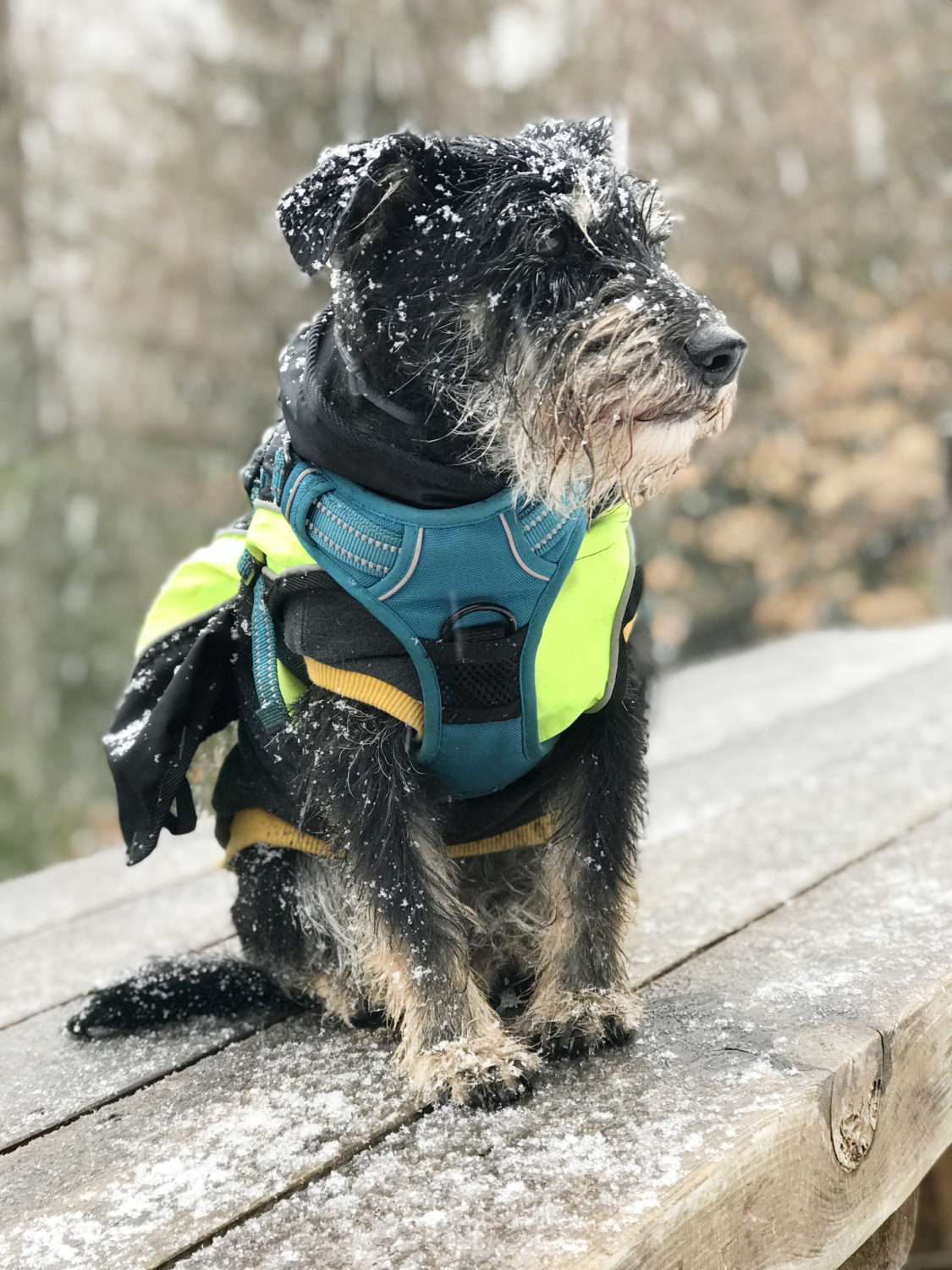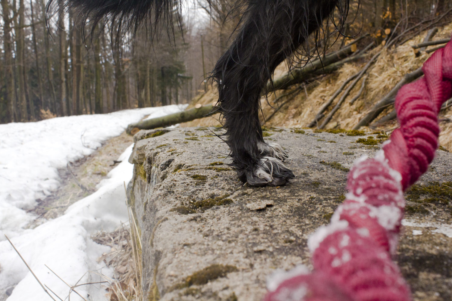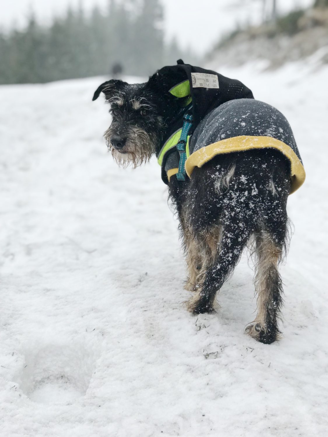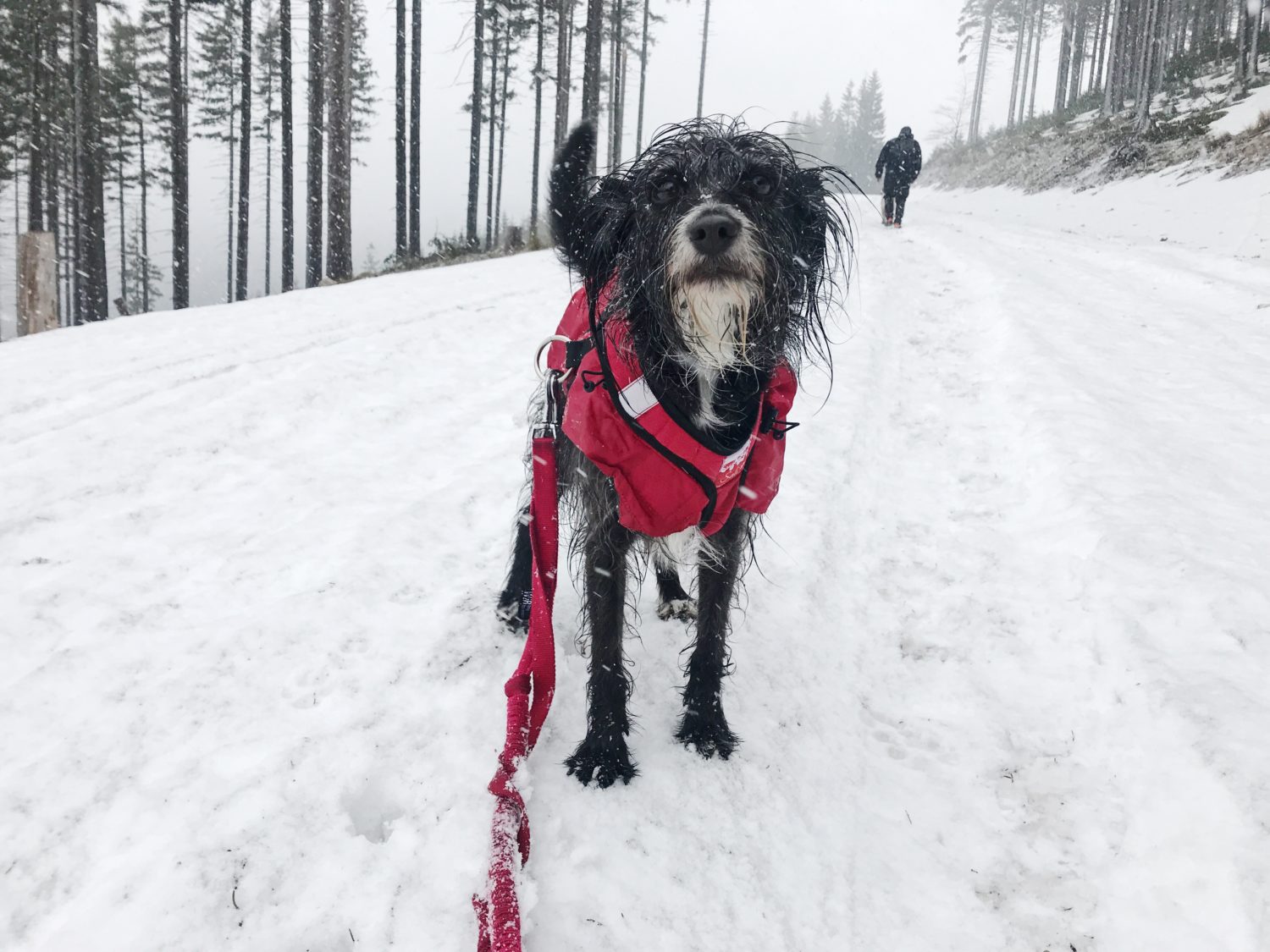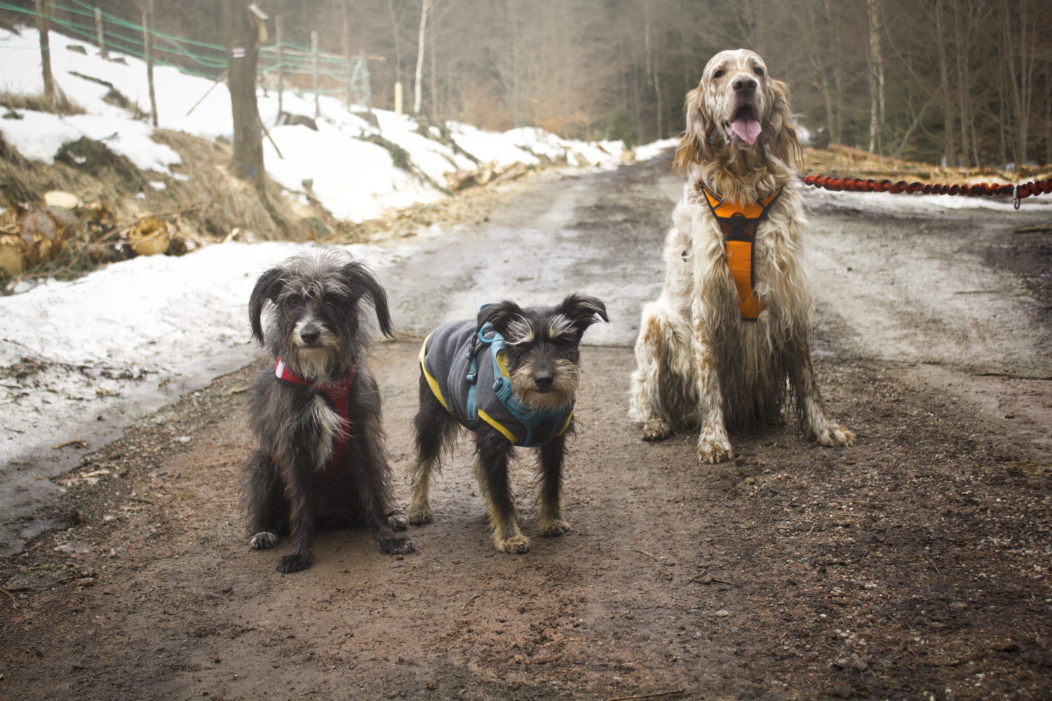 - zimą podwójna uwaga na futra. Nas spotkał mokry śnieg oblepiający i moczący psy. Bez kapotek mogłyby się szybko wyziębić.