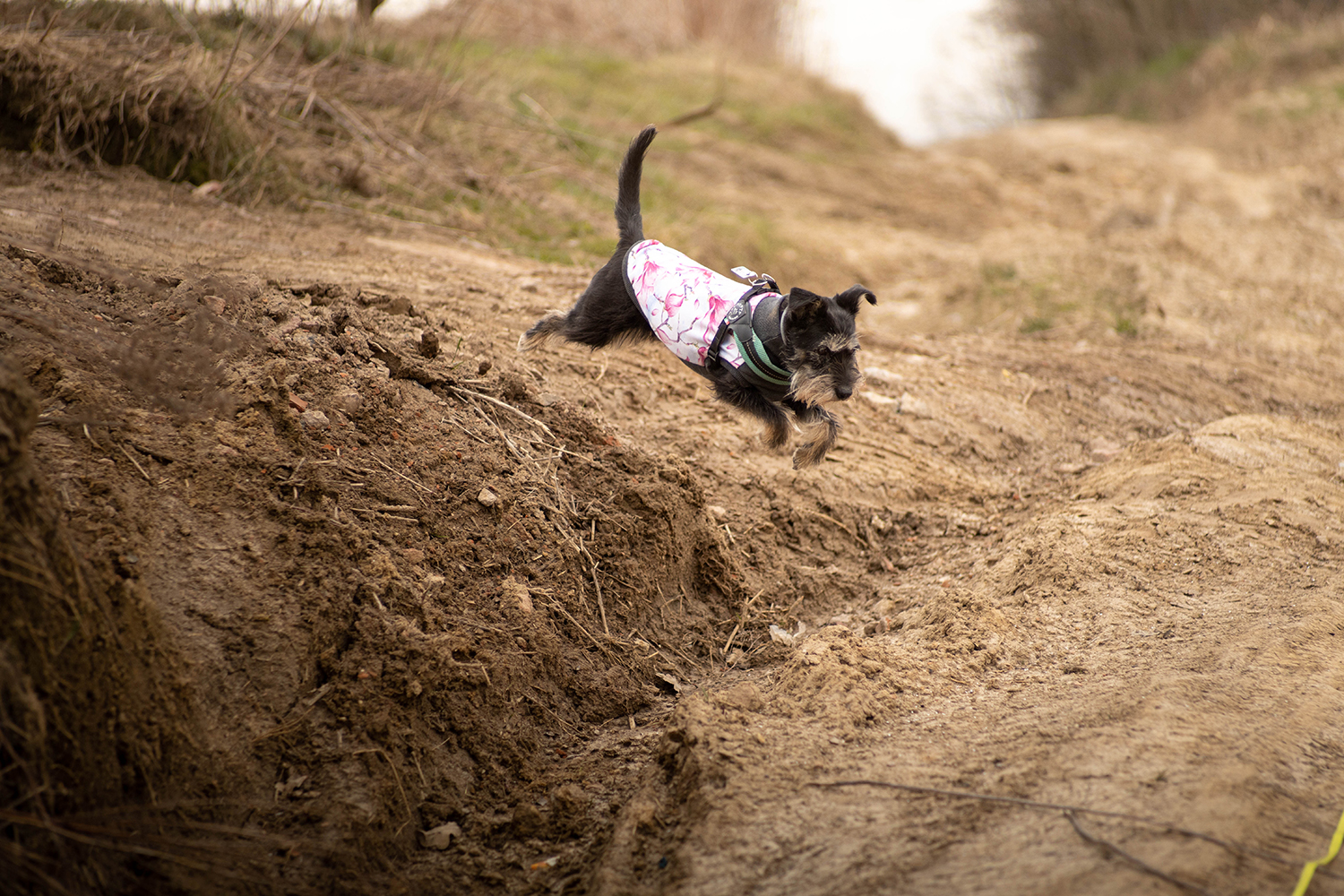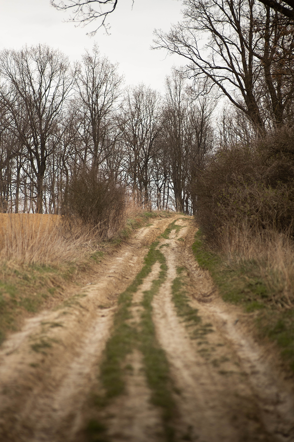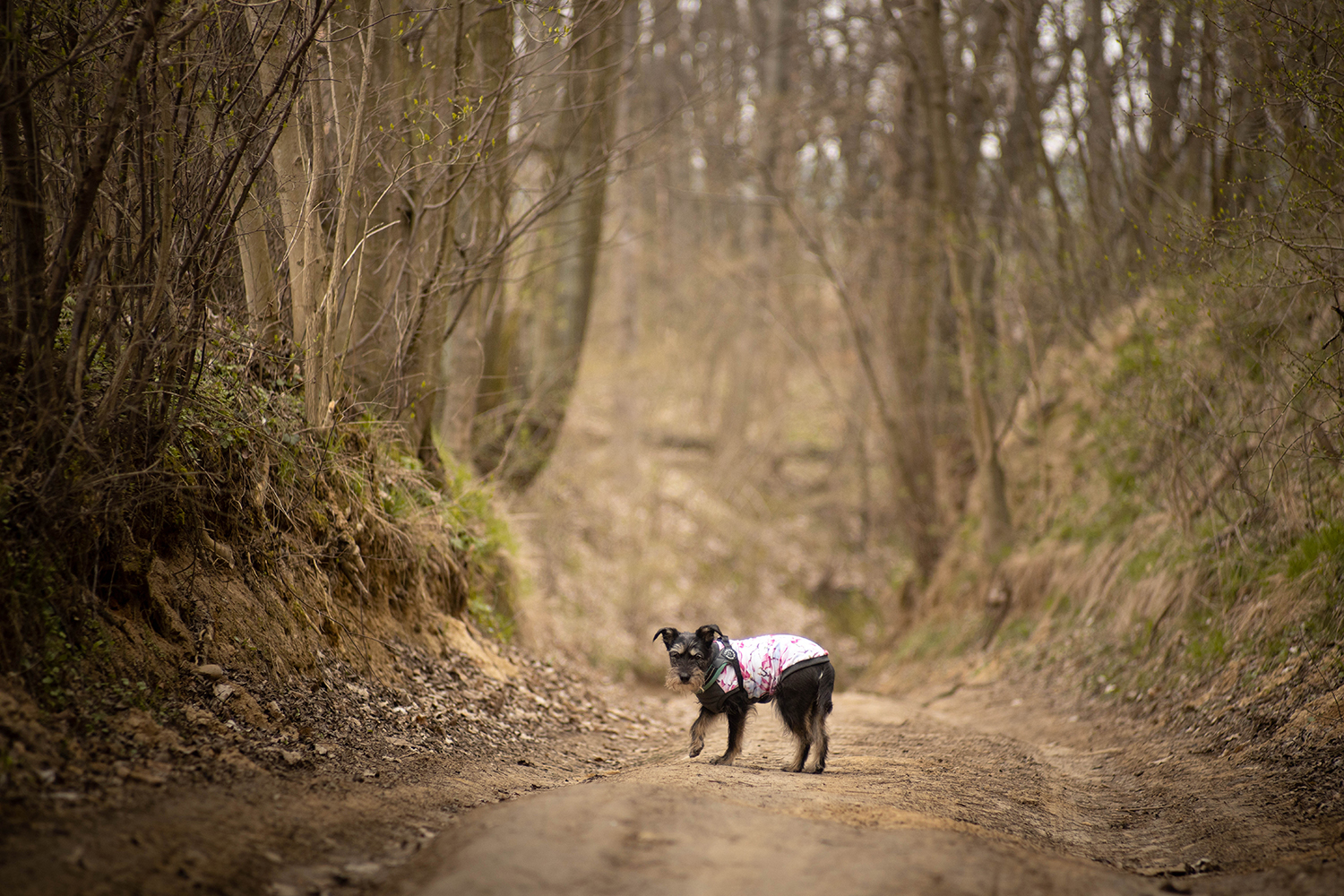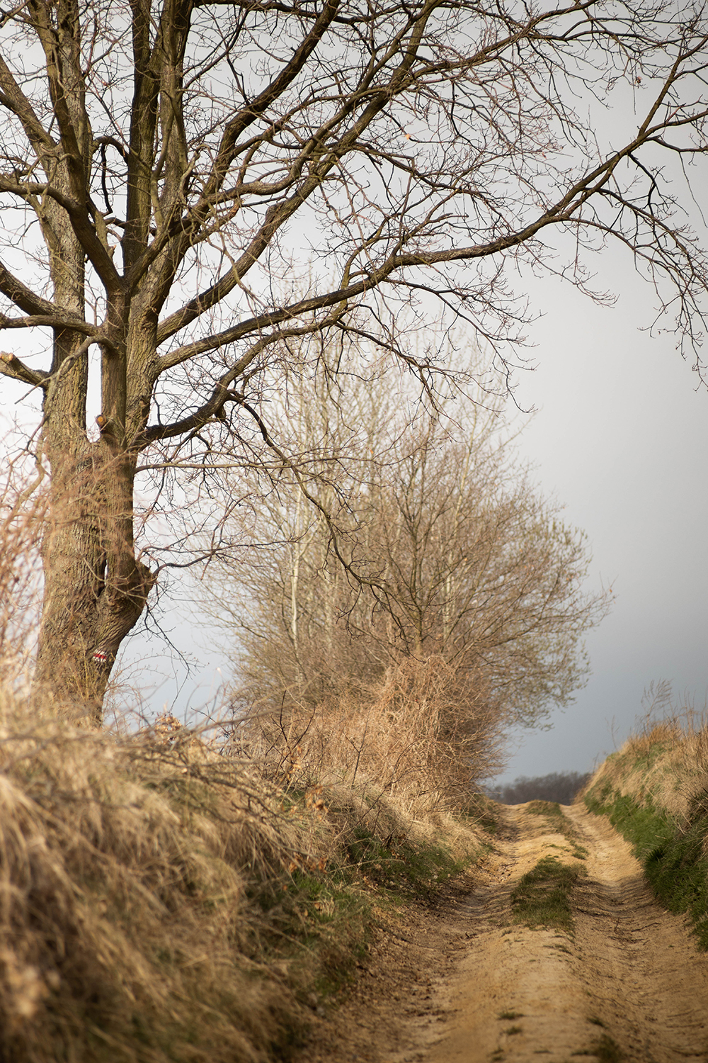 My, po wygramoleniu się z samochodu wpadłyśmy od razu na szlak. Prowadzi tędy szlak rowerowy Krzyżanowice- Żmigród. Przez jakiś czas podrepczemy właśnie nim. Cel- niespodzianka przyrodnicza . Okazuje się , że Zaczarowane Wzgórza kryją w sobie coś niespodziewanego, co nie zostało oznaczone na moich ukochanych mapach cz . Wąwozy Lessowe. Nie są spektakularne, pewnie zdarzają się ludzie przejeżdżający czy przechodzący tędy bez dłuższego spojrzenia na nie. Ot, wysokie , żółtawe ściany, miękkie piaskiem, nie dające się zdobyć. Strzeliste drzewami, które je obrastają. Wczesnym przedwiośniem, trochę wilgotnym wiszącym w powietrzu deszczem, dawały przedziwne wrażenie. Myślę, że dobre , że nie oglądam horrorów, bo było tu coś… takiego.. co sprawiło, ze zrobiłam kilka fotek, machnęłam zwrot na pięcie i odwołałam suczydła wprost na boczną ścieżkę, ku dalszej wędrowce