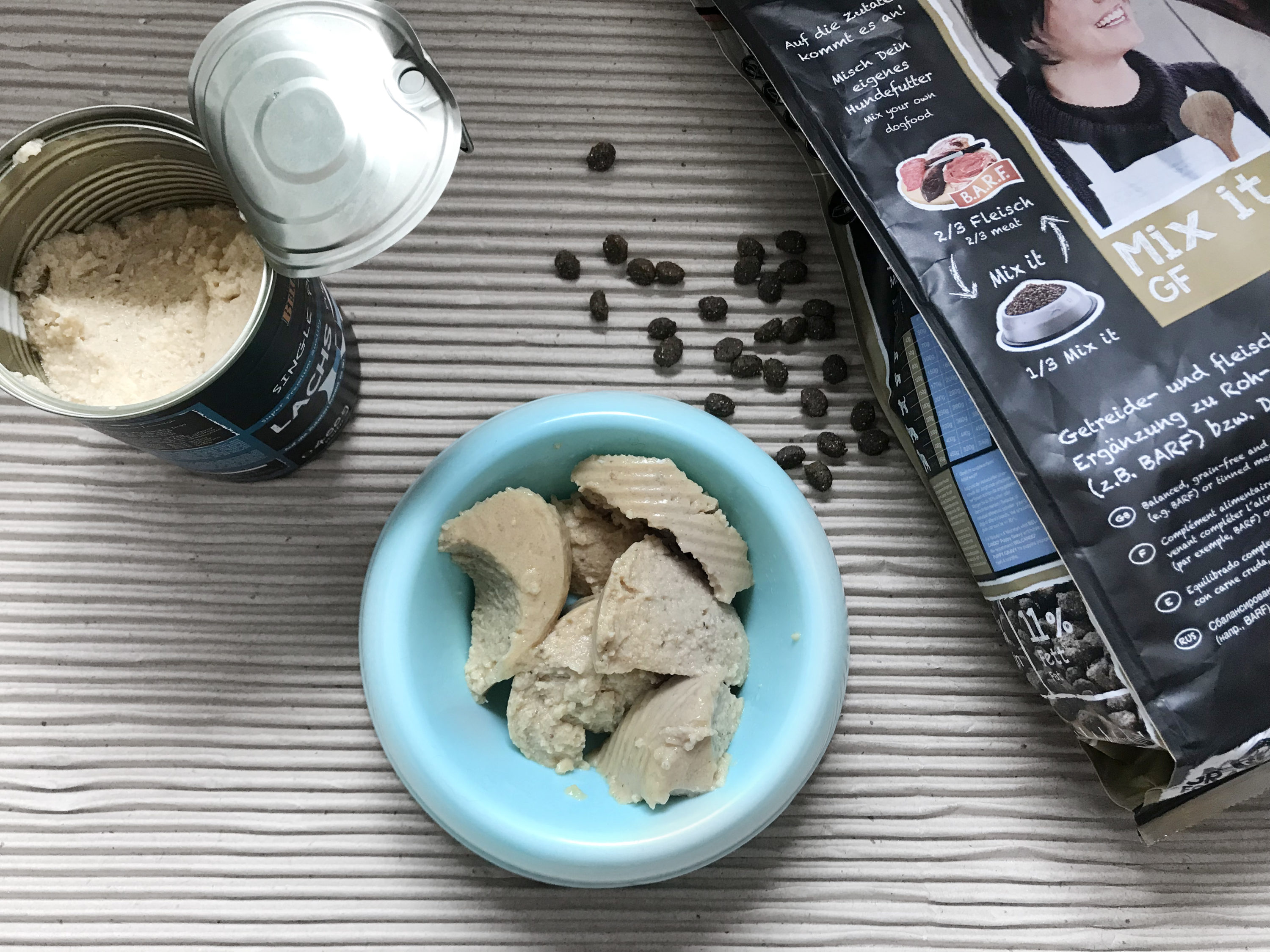 Psy są mięsożerne. No dobra, nie tak jak koty, ale to też predatory. Mają zębiszcza, nawet ostre – potwierdzam, Bu nie trafiła ostatnio w szarpak… Jak się poczyta mądre książki to się człowiek dowie, że mają taki brzuchol żeby rzeczone mięsiwo strawić. W całości, z łuskami, kośćmi, podrobami i co tam jeszcze wchodzi w jego skład. Z taką wiedzą i po kursie teoretycznym z zakresu żywienia futer (na który poszłam żeby utwierdzić się w przekonaniu, że tak karmić nigdy-przenigdy nie będę 😛 ) ponad 2 lata temu podjęłam decyzję o przestawieniu Pufioka z chrupek na dietę BARF. Chcąc nie chcąc, jak tylko było wiadomo, że Bu zostaje ze mną na stałe, również w jej misce wylądowały zacne kawały przeróżnych mięs. O BARFie możecie poczytać w dwóch książkach naszych rodzimych autorek: Małgorzaty Olejnik oraz Izabeli Sekuły.