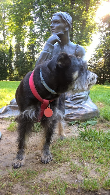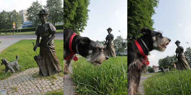 W sobotę z samego rana urlopowego (czyt. po śniadaniu w psiolubnym pensjonacie Perła Polanicy – lubnym płatnie, ale niech będzie, śniadania 1.klasa, koło 10) wyruszyliśmy zaopatrzeni w zapas wody i przekąsek regeneracyjnych dla 2. i 4 nogów do Międzygórza, skąd zaczynał się szlak na Marię Śnieżną. Samochód zostawiliśmy koło wodospadu Wilczki, przechodząc przez całe Międzygórze weszliśmy na żółty szklak prowadzący i na Marię i do Ogrodu Bajek. Bajki odpuściliśmy, chcieliśmy przede wszystkim wejść na Górę Igliczną (tam jest usytuowane Sanktuarium M.), a temperatura tylko nieznacznie spadła na leśnym odcinku szlaku.