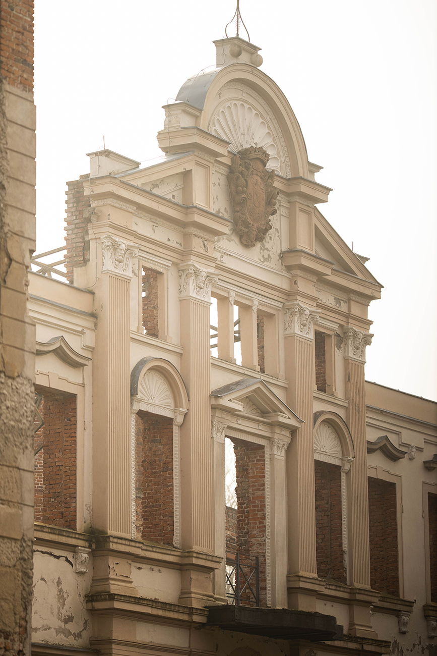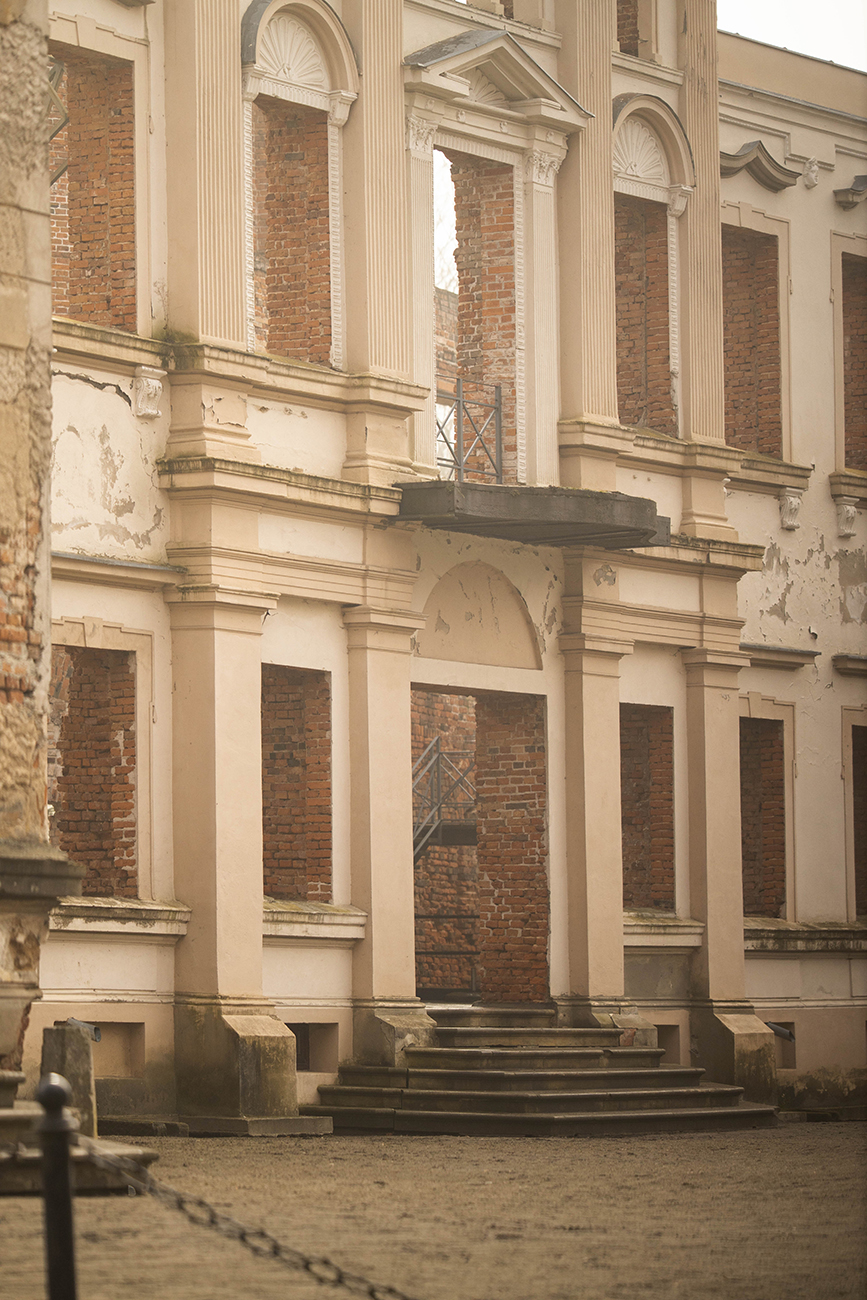 Sporo się jednak zmienia z czasem . Pozostałości Pałacu pozostają niezmienione, za to moje podróżowanie przeszło niezłą ewolucję . I nagle to samo miejsce  mogę odkrywać na nowo. Zupełnie inne kwestie wybijają się na pierwszy plan . Bo podróże z dzieckiem zmuszają do przejścia na ciut inne ścieżki – dosłownie- te dostępne dla wózka czy małych kończyn. Ale i w przenośni. Czasem ważny jest szybki powrót do auta, czasem dodatkowe atrakcje na trasie czy miejsce na postój