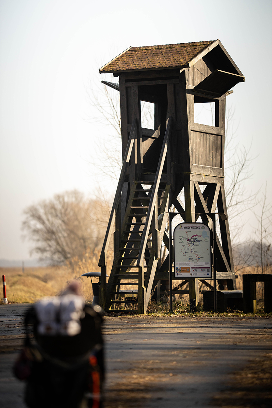 Jakby kaczki, łabędzie, gęsi i przelatujące klucze żurawi to było mało, po przejściu około 1 km wałem dochodzimy do wieży widokowej. Uwaga- wejście a zatem i zejście jest bardzo strome. Wiem bo wlazłam z M. uznałam że to średni pomysł kiedy przyszło do schodzenia. Ale pod samą wieżą złapiemy ławeczki . Można machnąć przerwę na śniadanie na łonie przyrody. Są też kosze na śmieci