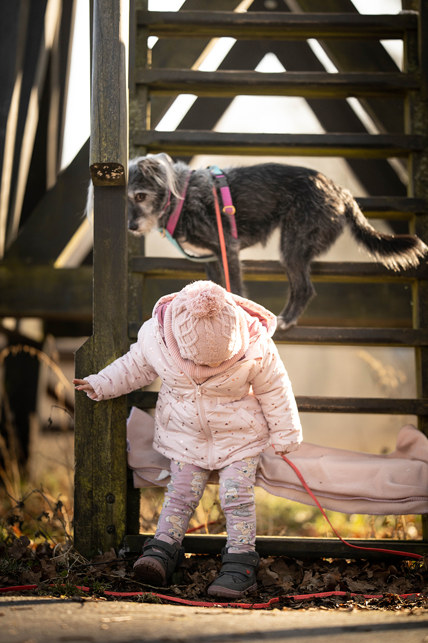 Patrząc na to miejsce już nie tylko pod kątem spaceru z psem ale i z mobilną 2.5latką stwierdzam że park jest idealny na połażenie z dziecięciem. Płasko, ławeczki, jest gdzie cupnąć. Tu mostek, tam bajorko.