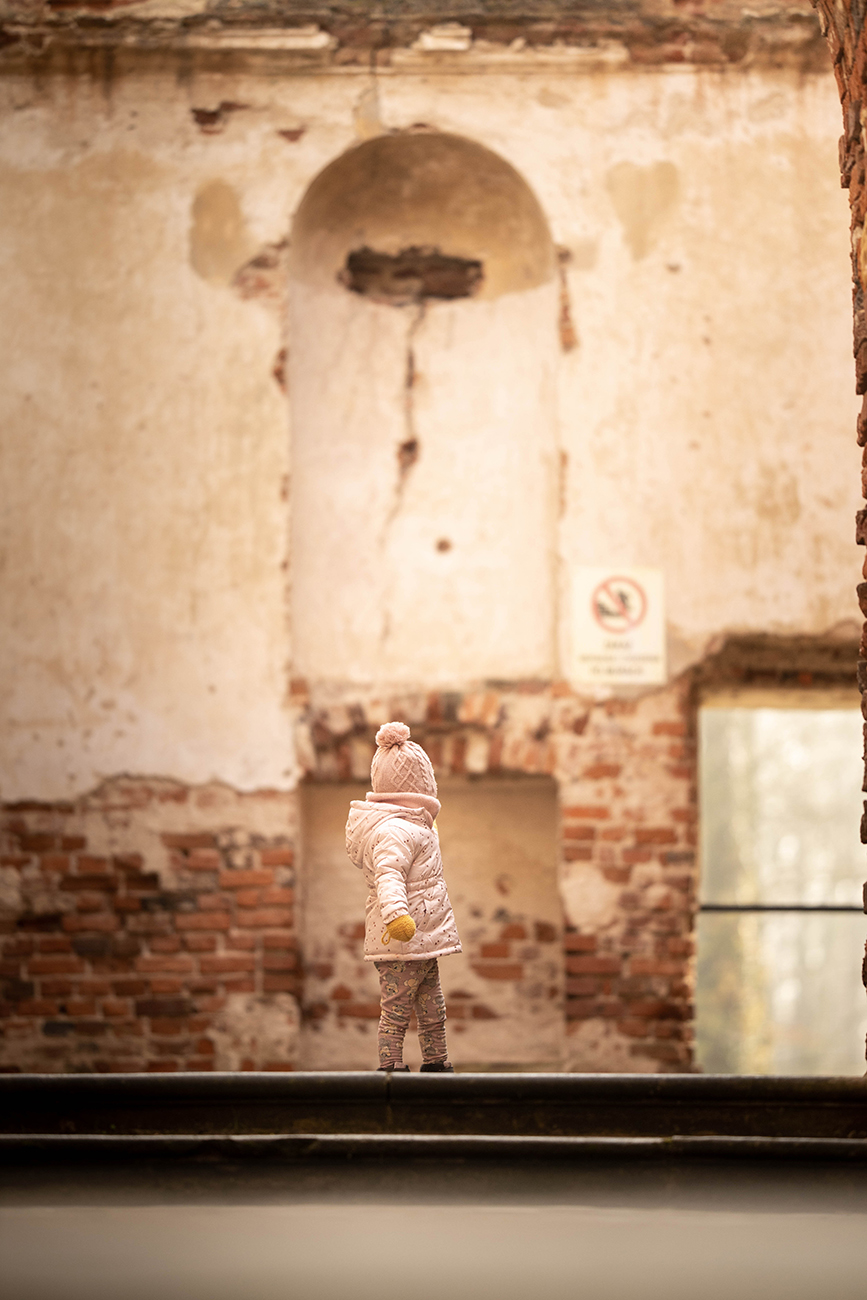 I wiem, że M nie będzie pamiętać że tu była, ale podoba mi się pokazywanie jej różnych miejsc. Stawiam na teorię, że obcowanie z historią, nawet taki spacer, pomacanie ceglanych murów czy wejście na tarasy widokowo, zaprocentuje wyrobionym smakiem i szacunkiem do historii.
